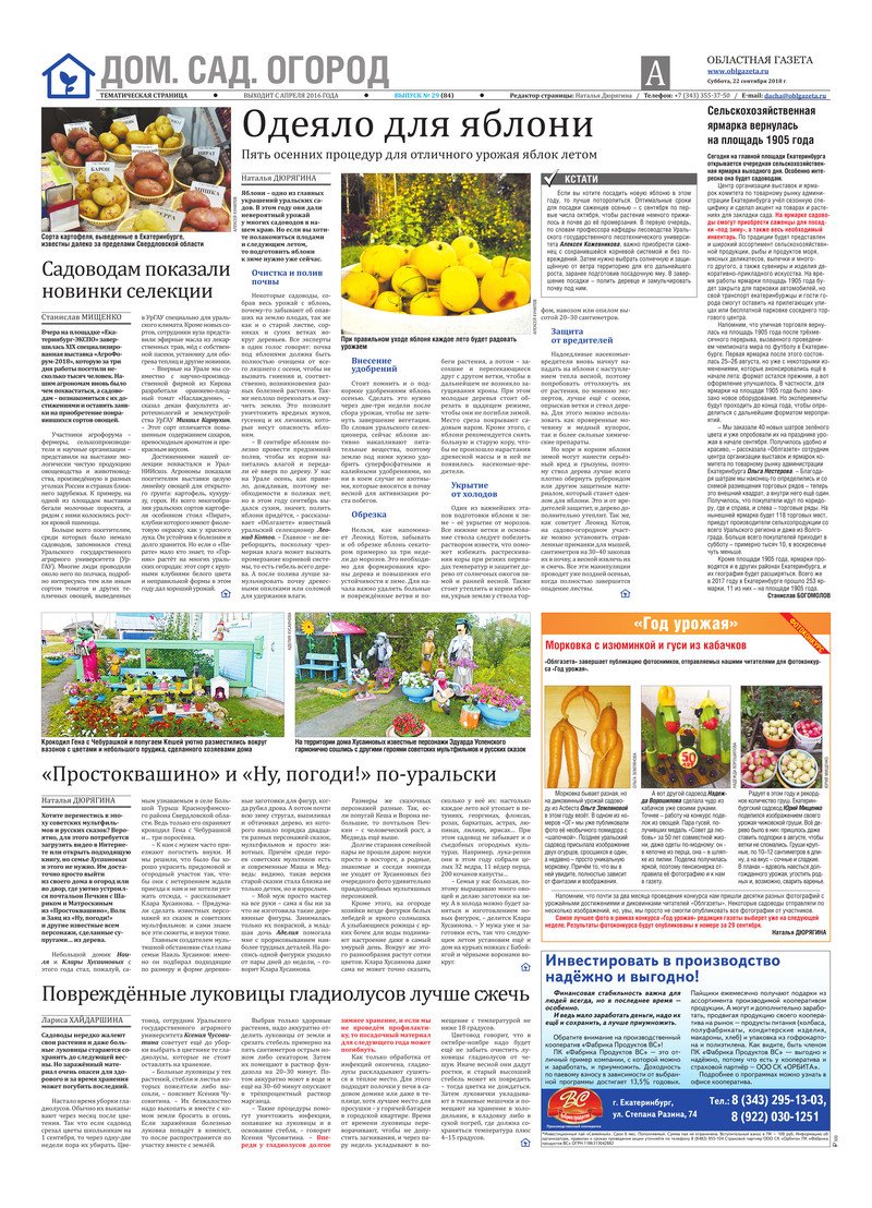 «Областная газета» № 173 (8473) от 22 сентября 2018 года