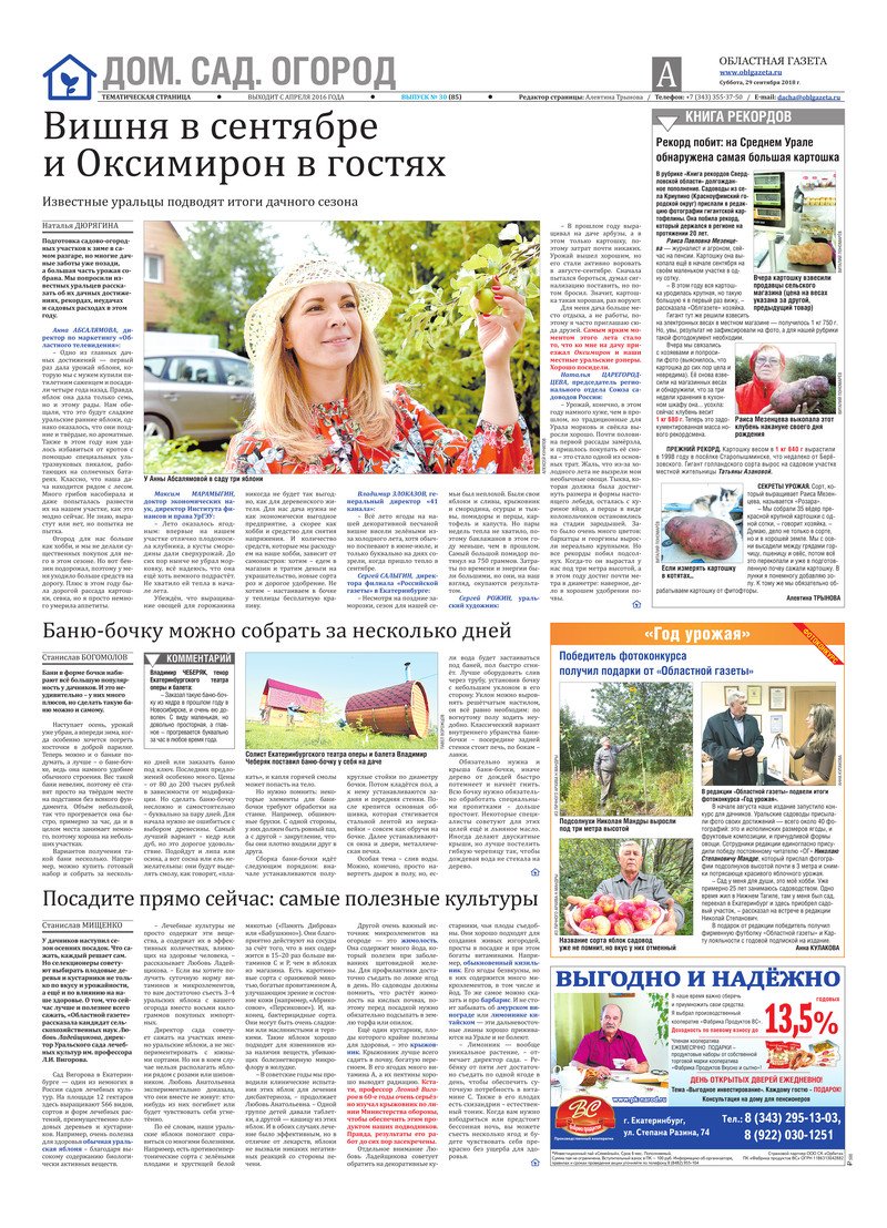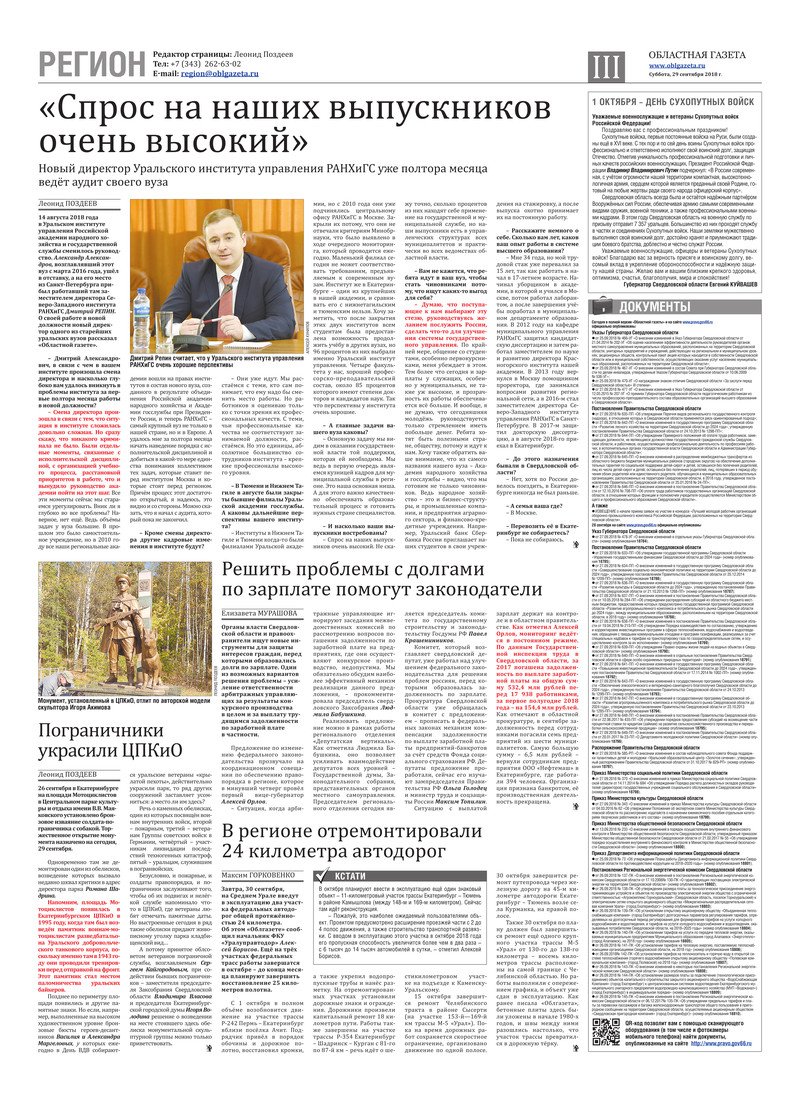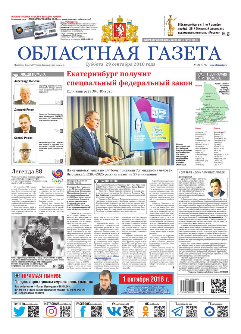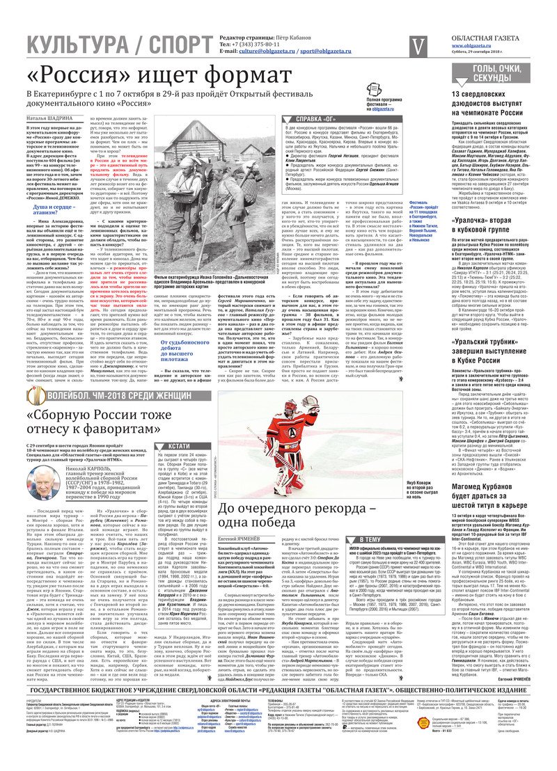 «Областная газета» № 178 (8478) от 29 сентября 2018 года