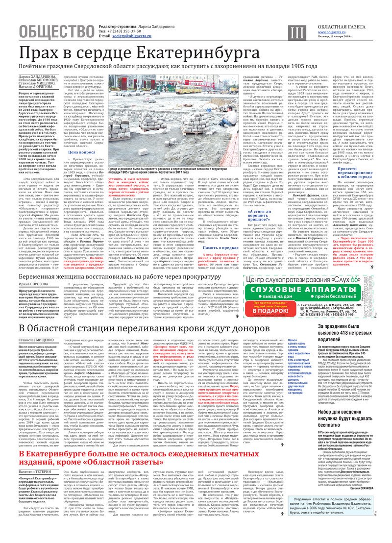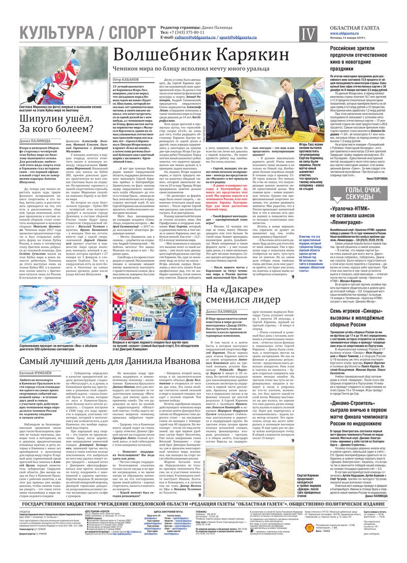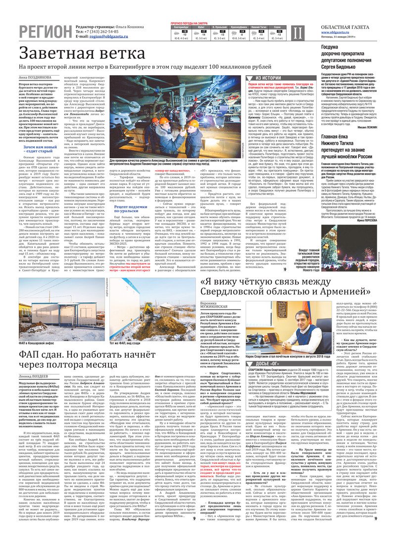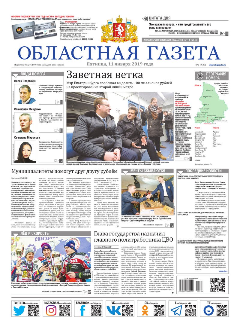 «Областная газета» № 3 (8545) от 11 января 2019 года