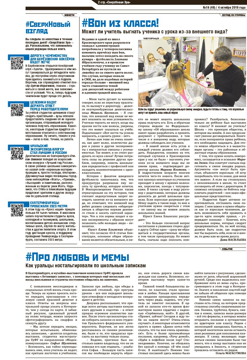 «Новая эра» № 16 (49) от 4 октября 2019 года