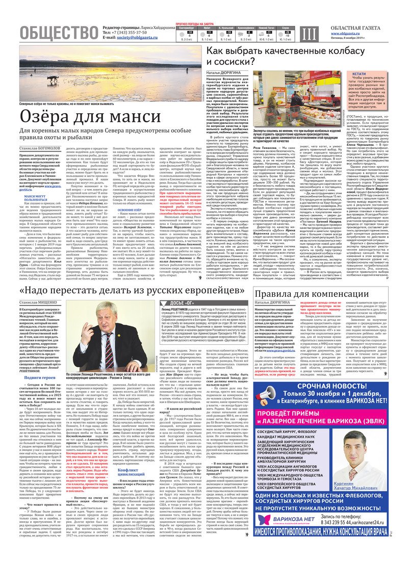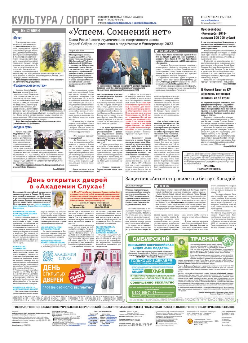 «Областная газета» № 205 (8747) от 8 ноября 2019 года