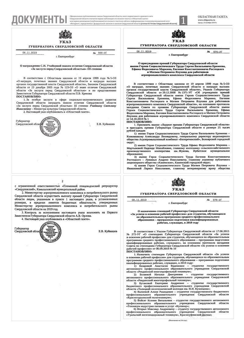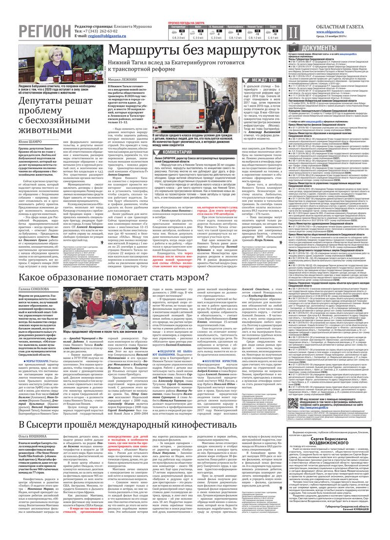 «Областная газета» № 208 (8750) от 13 ноября 2019 года