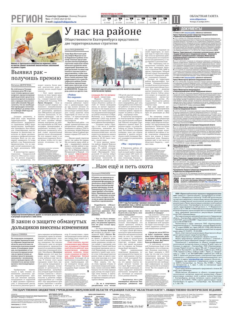 «Областная газета» № 214 (8756) от 21 ноября 2019 года