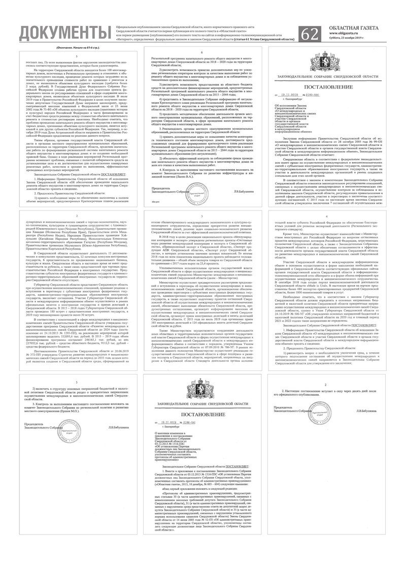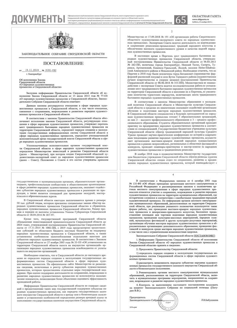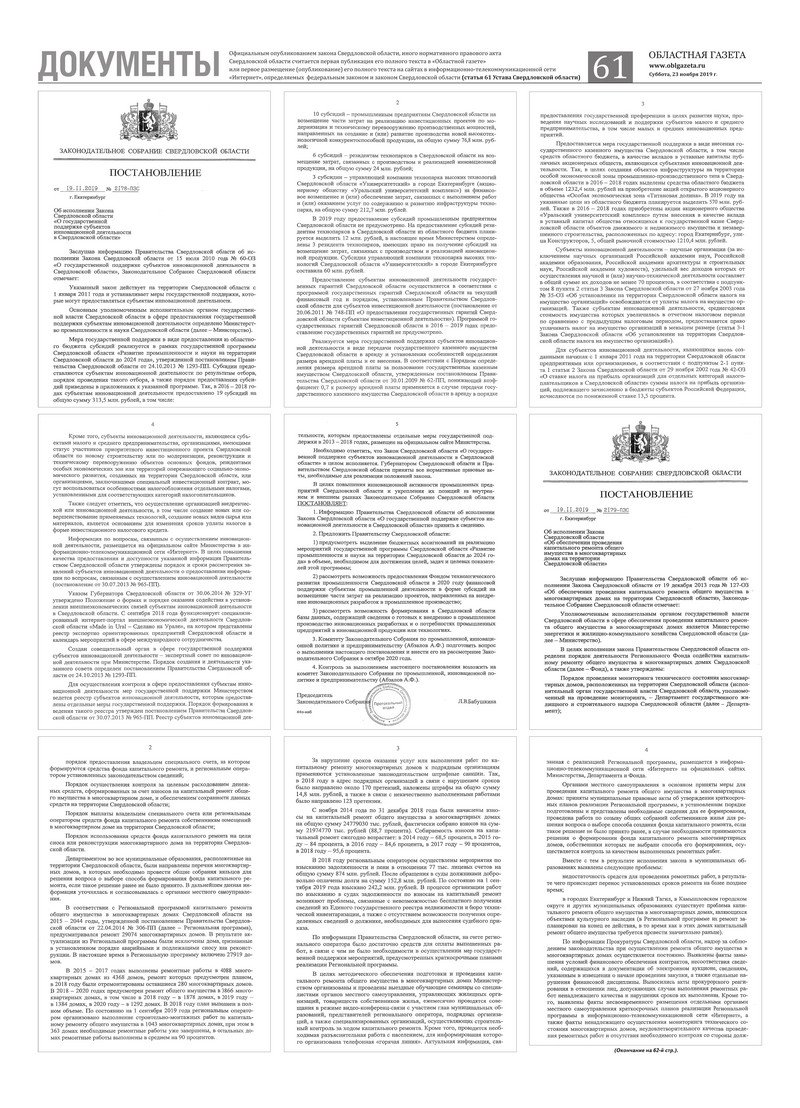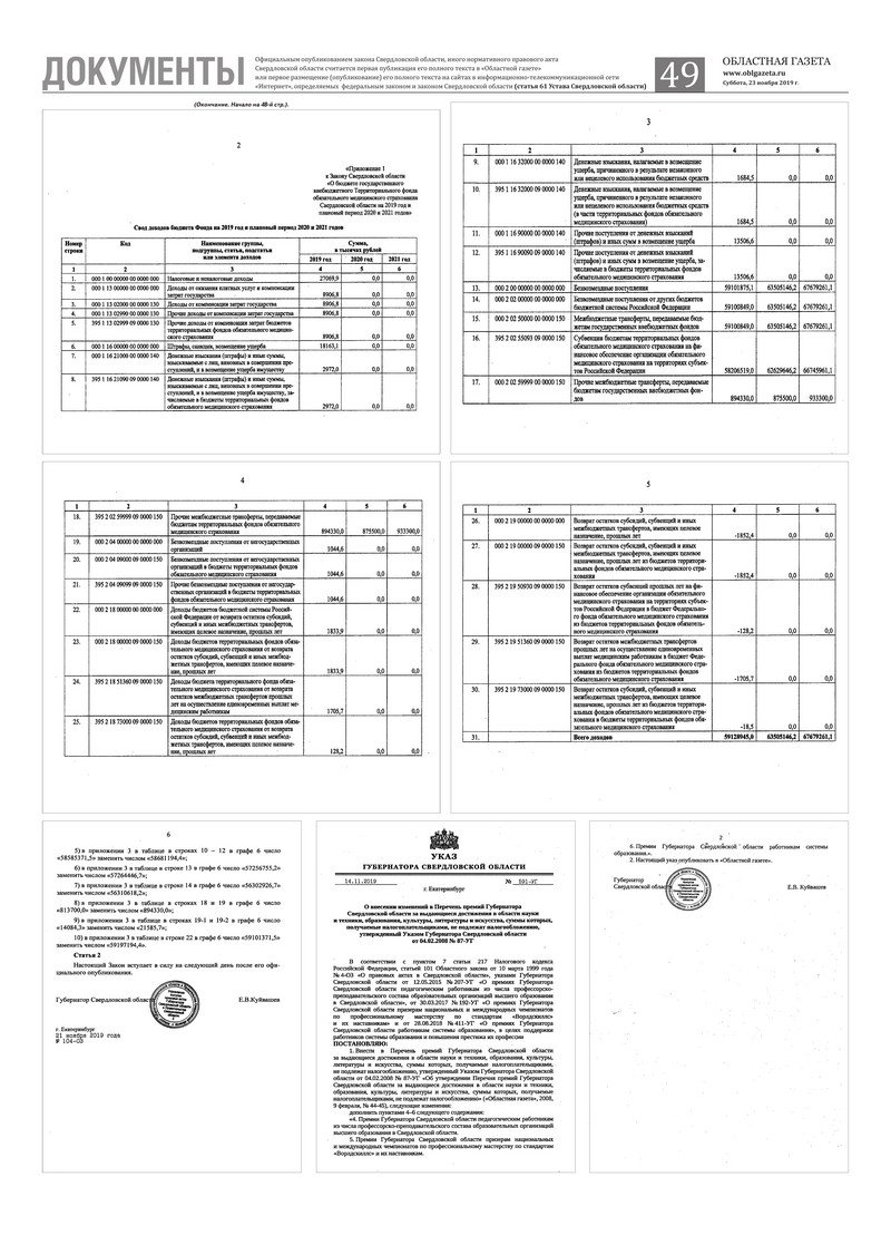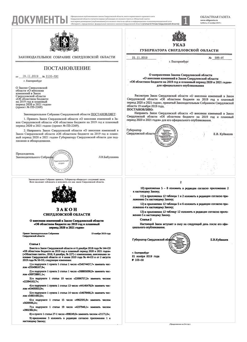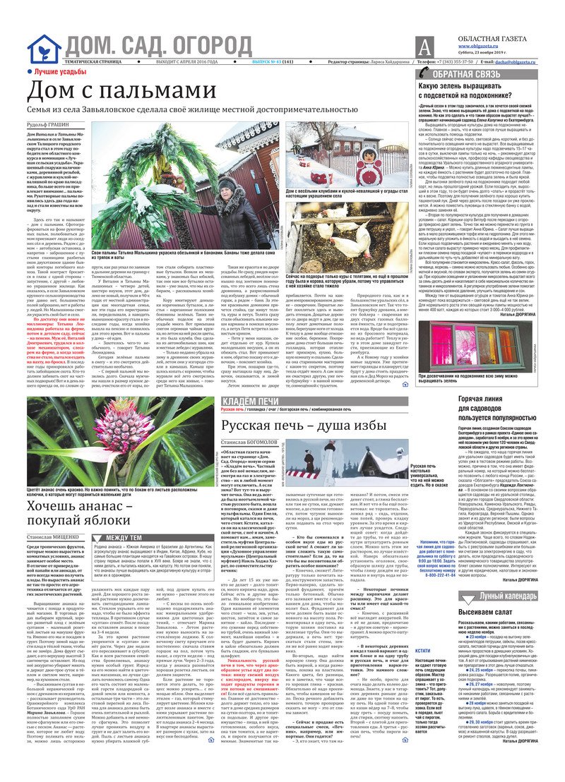 «Областная газета» № 216 (8758) от 23 ноября 2019 года