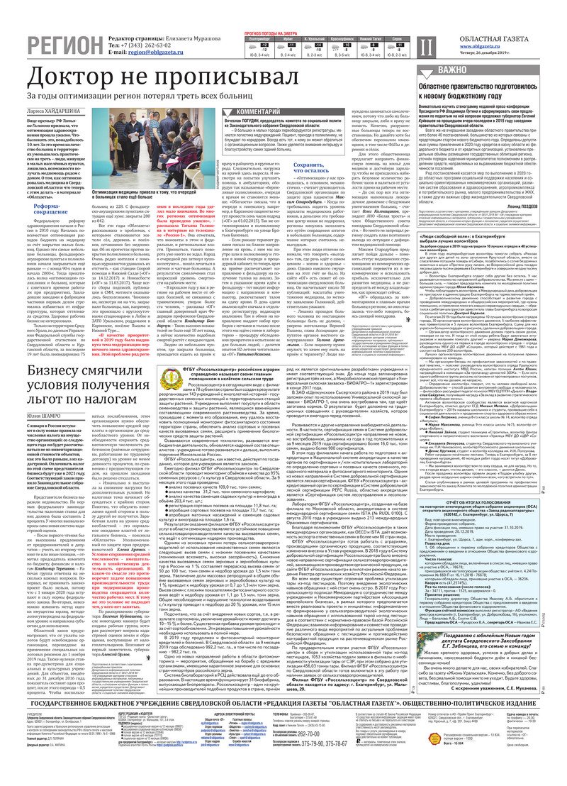 «Областная газета» № 239 (8781) от 26 декабря 2019 года