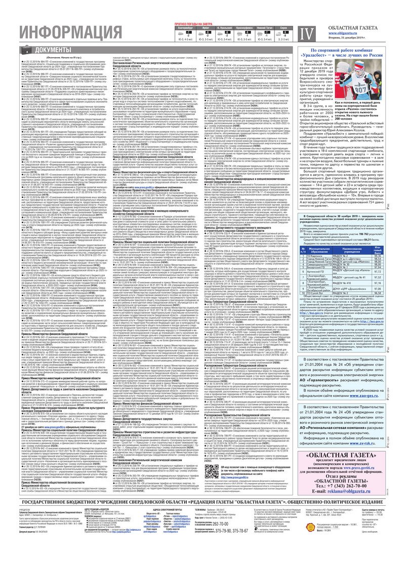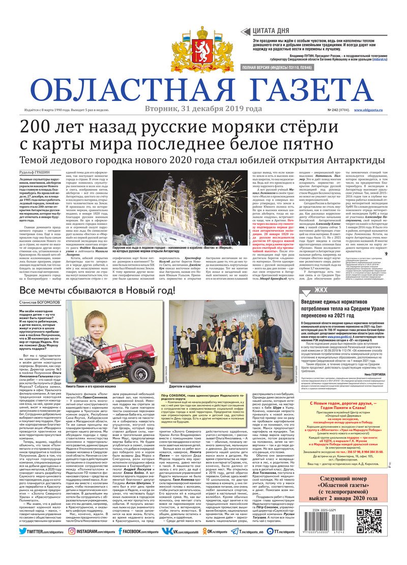 «Областная газета» № 242 (8784) от 31 декабря 2019 года