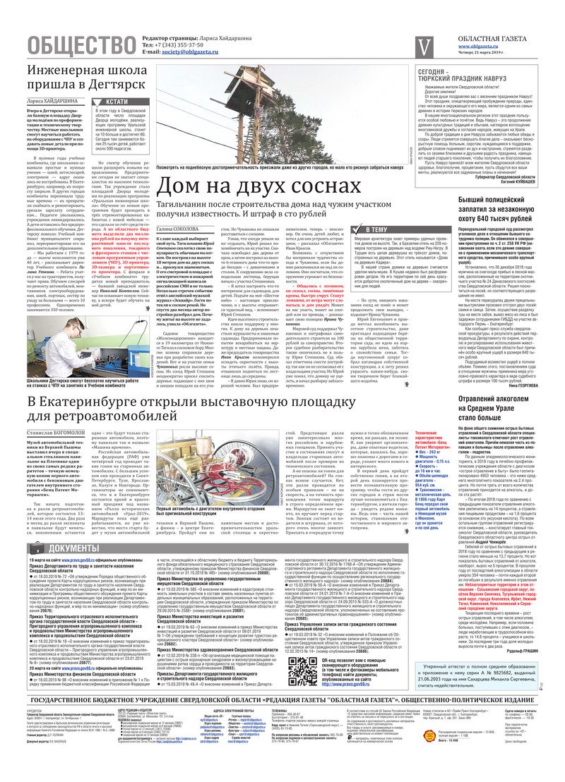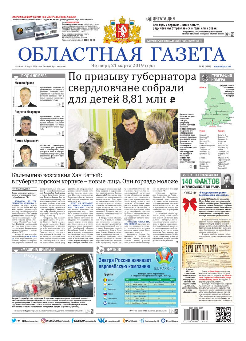 «Областная газета» № 49 (8591) от 21 марта 2019 года