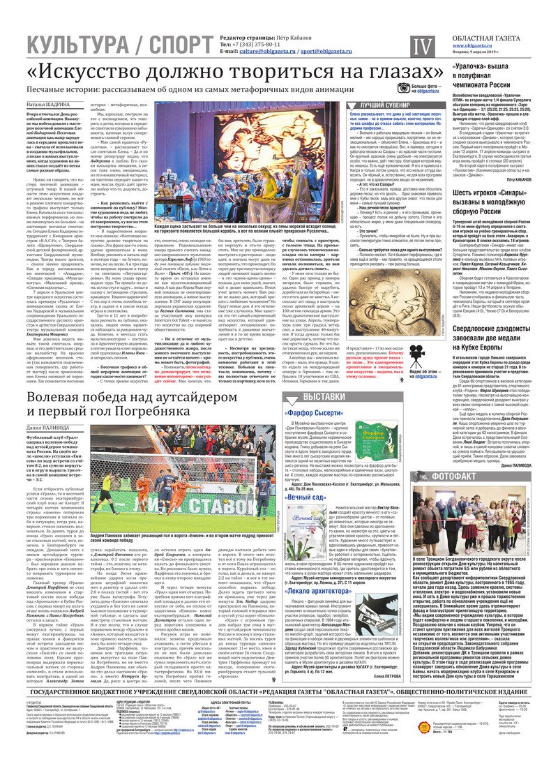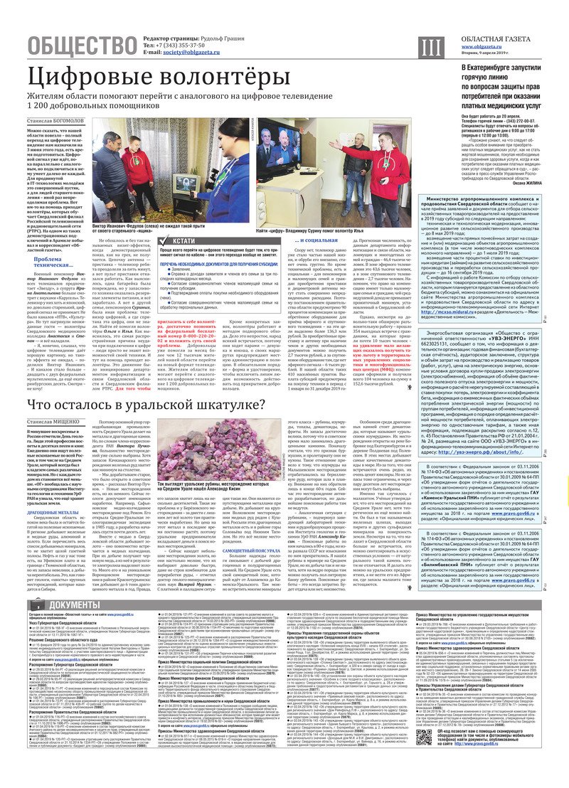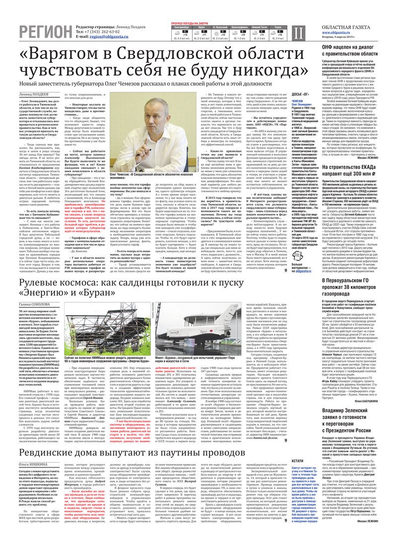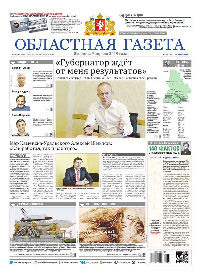«Областная газета» № 62 (8604) от 9 апреля 2019 года