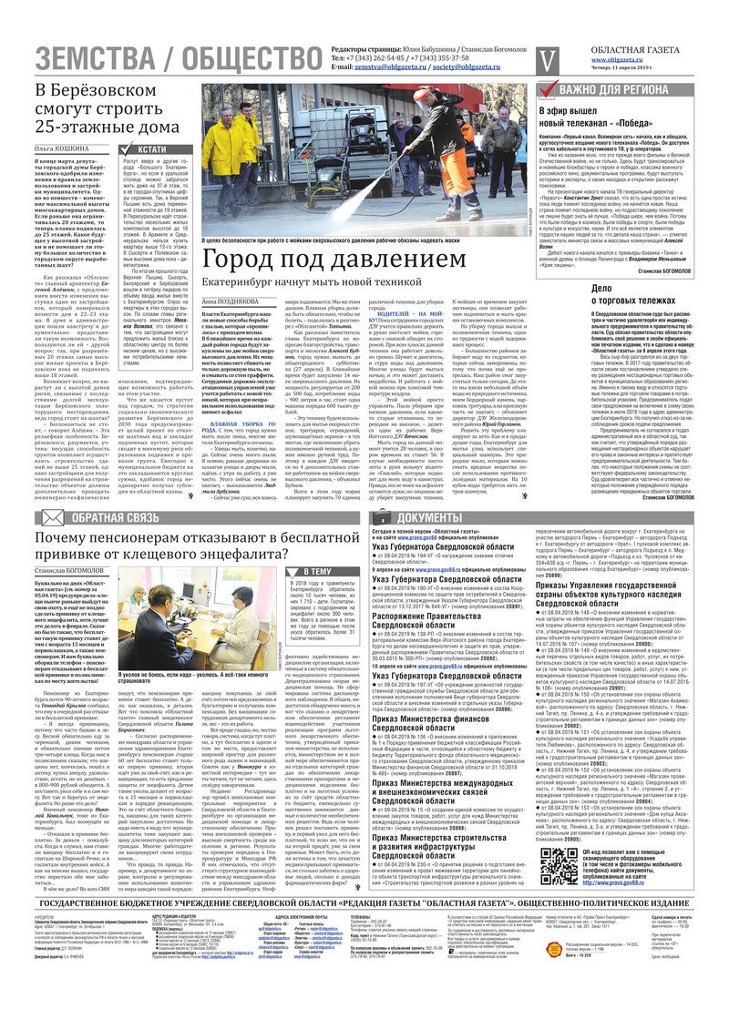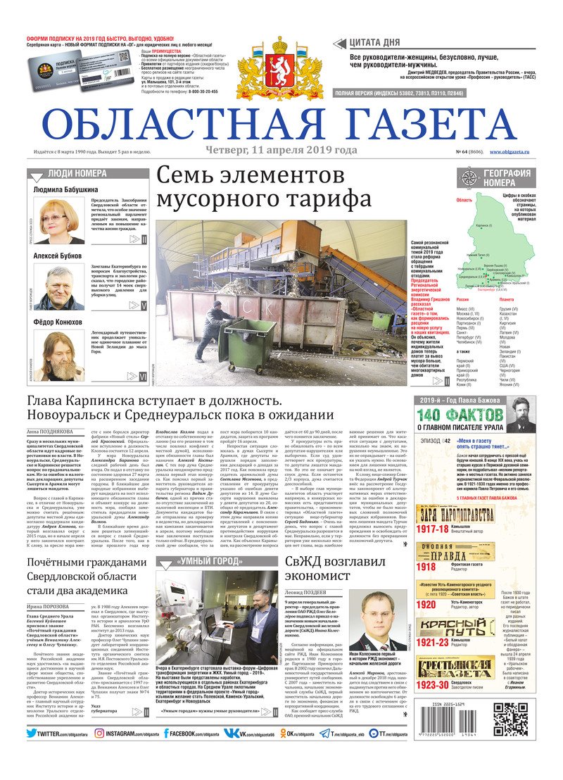 «Областная газета» № 64 (8606) от 11 апреля 2019 года