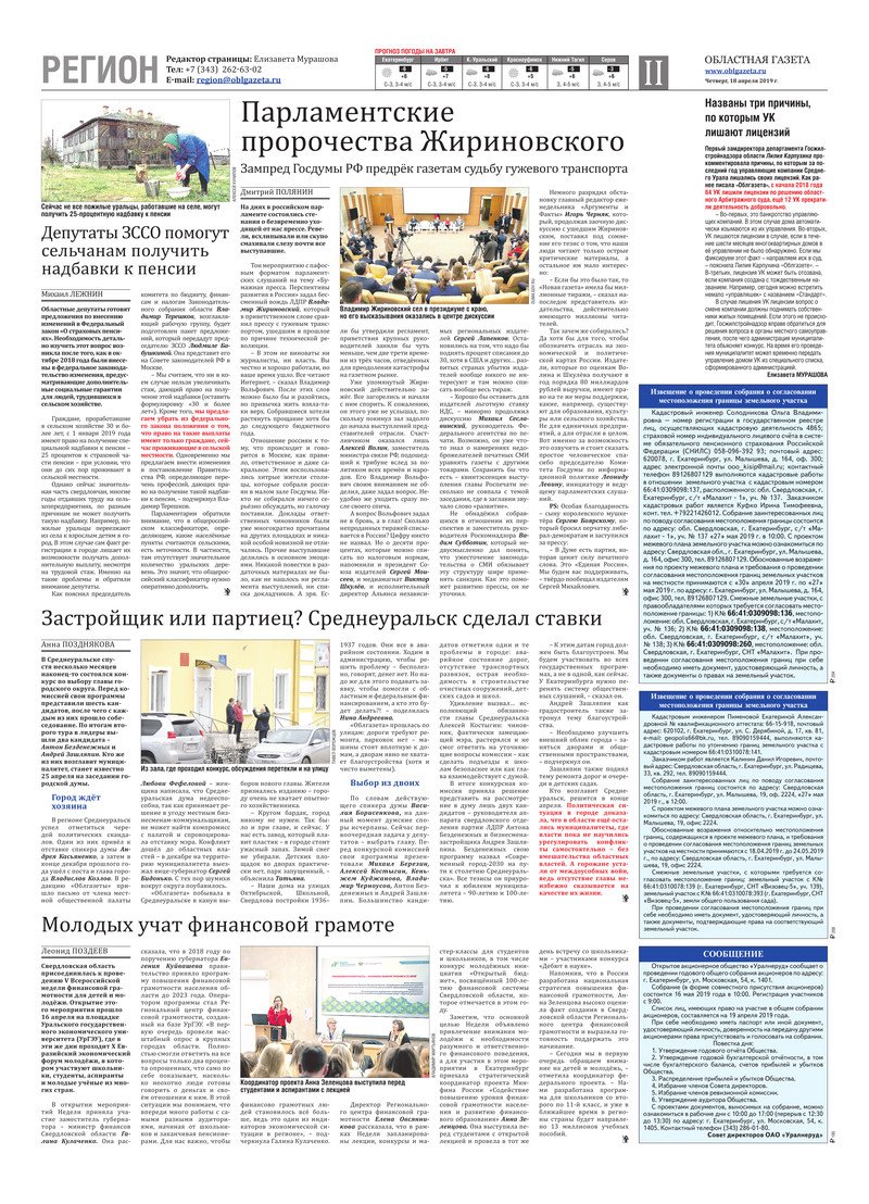 «Областная газета» № 69 (8611) от 18 апреля 2019 года
