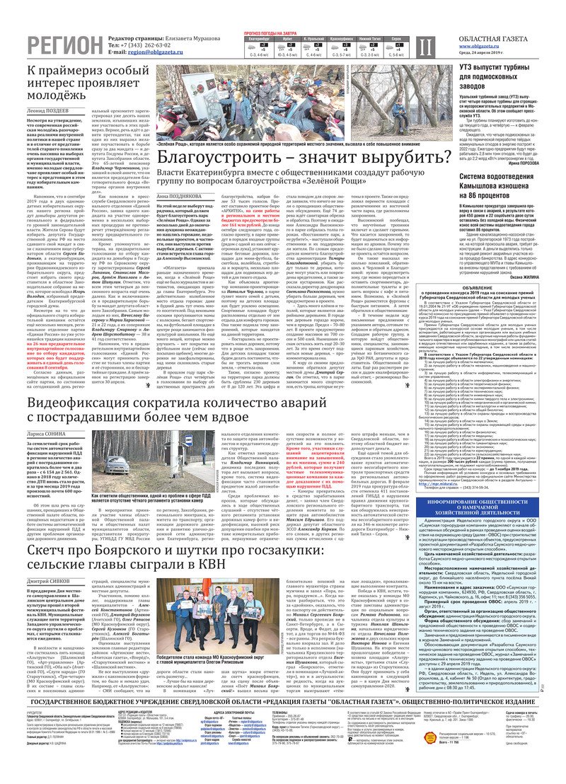«Областная газета» № 73 (8615) от 24 апреля 2019 года