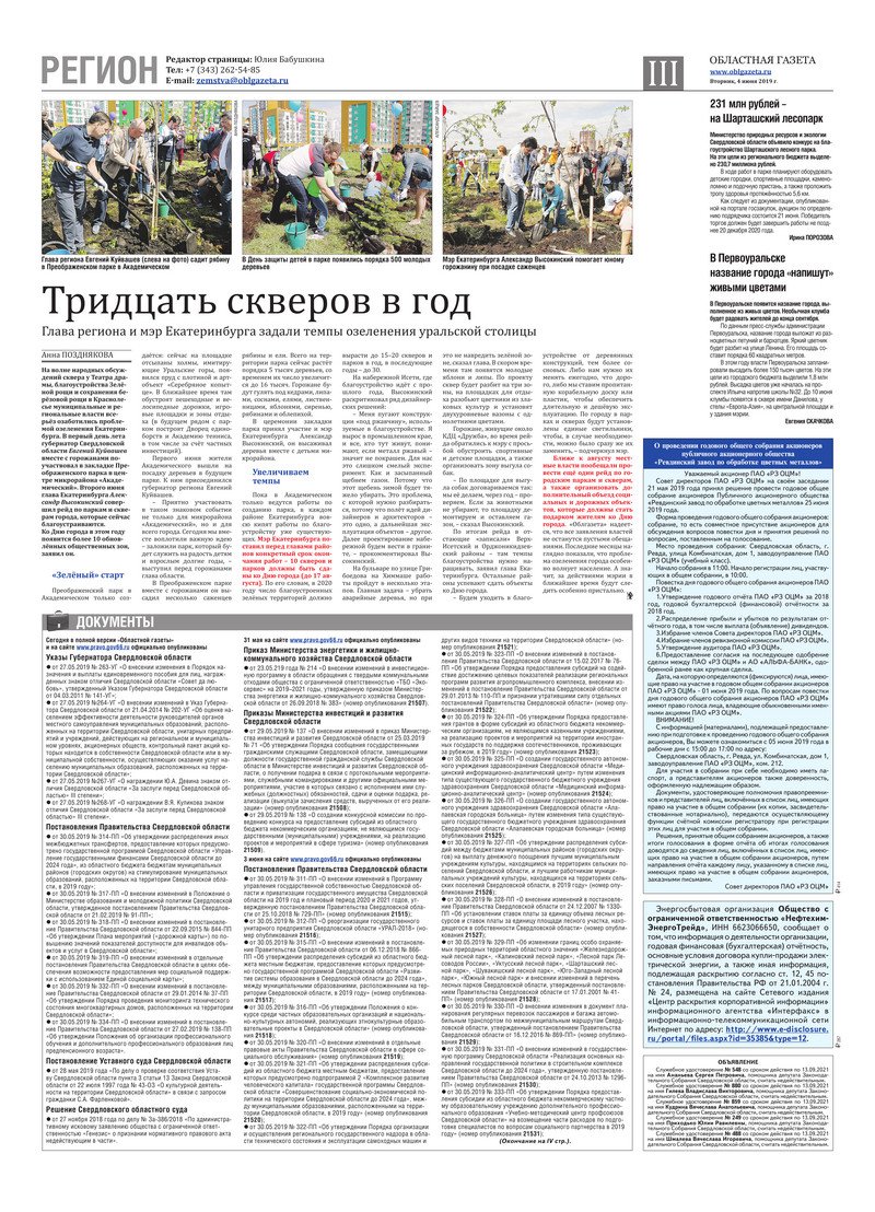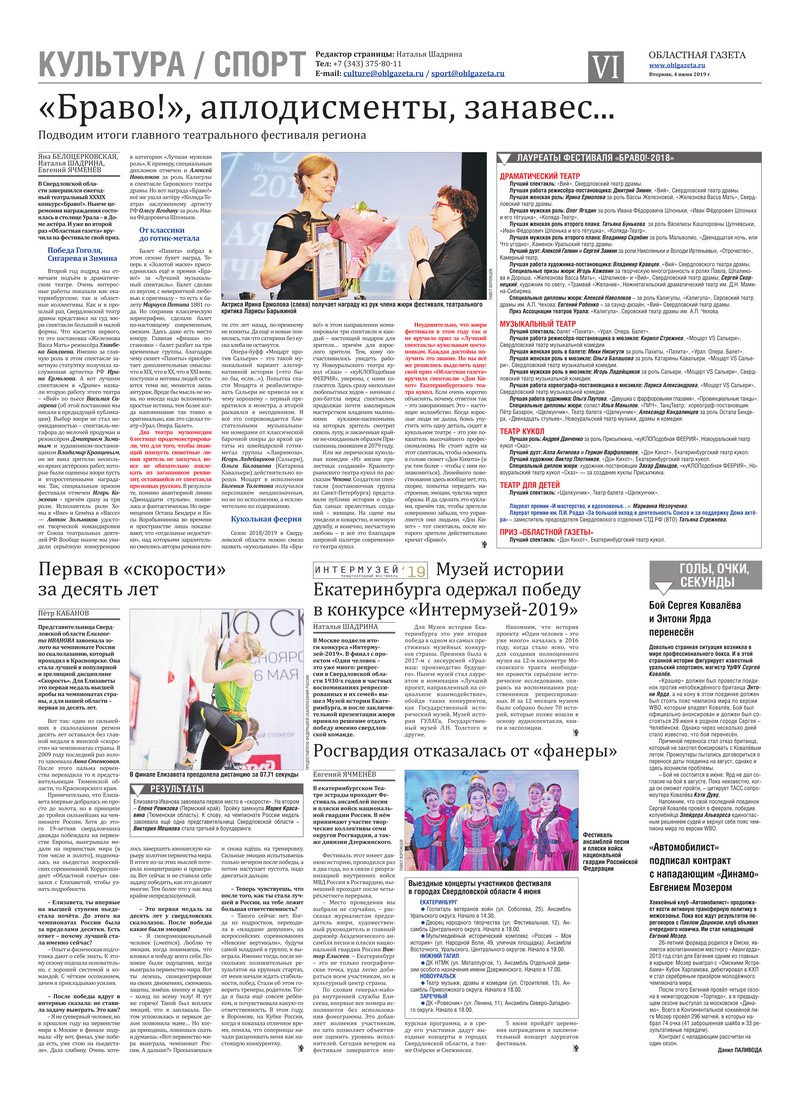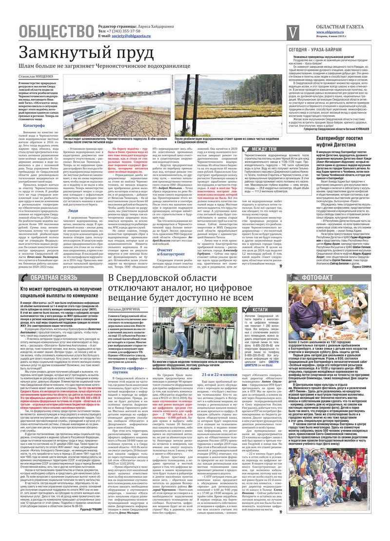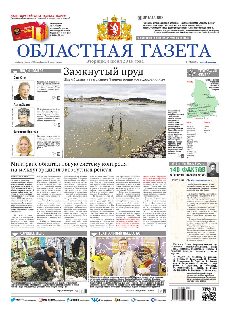 «Областная газета» № 95 (8637) от 4 июня 2019 года