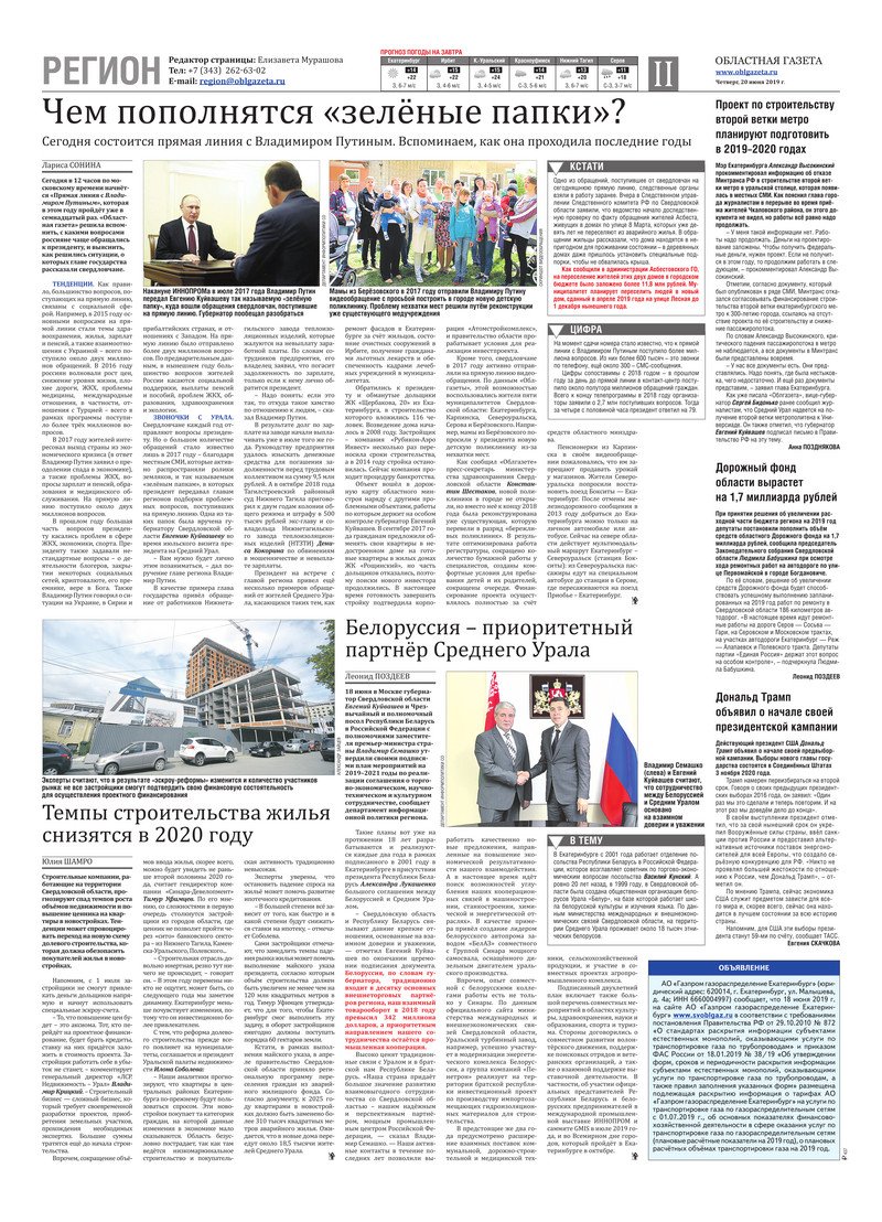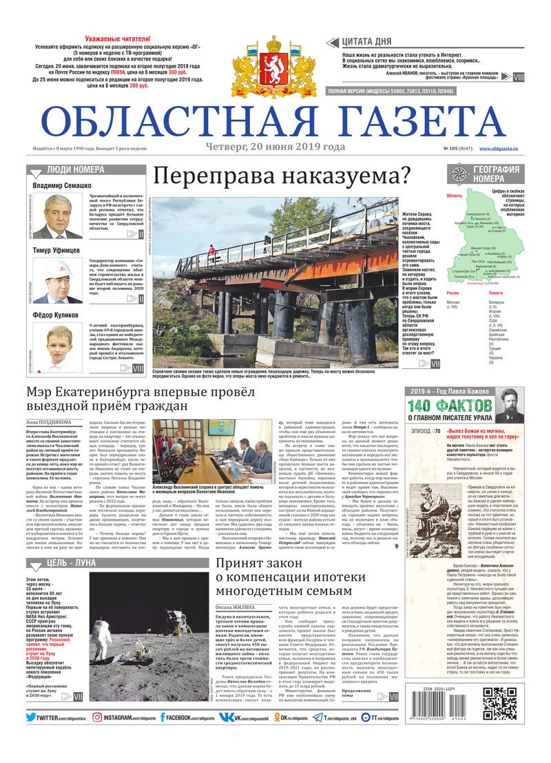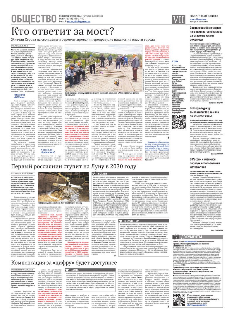 «Областная газета» № 105 (8647) от 20 июня 2019 года