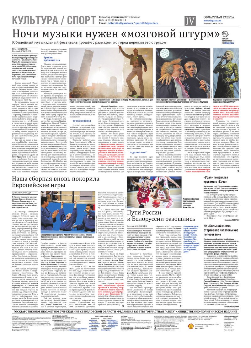 «Областная газета» № 113 (8655) от 2 июля 2019 года