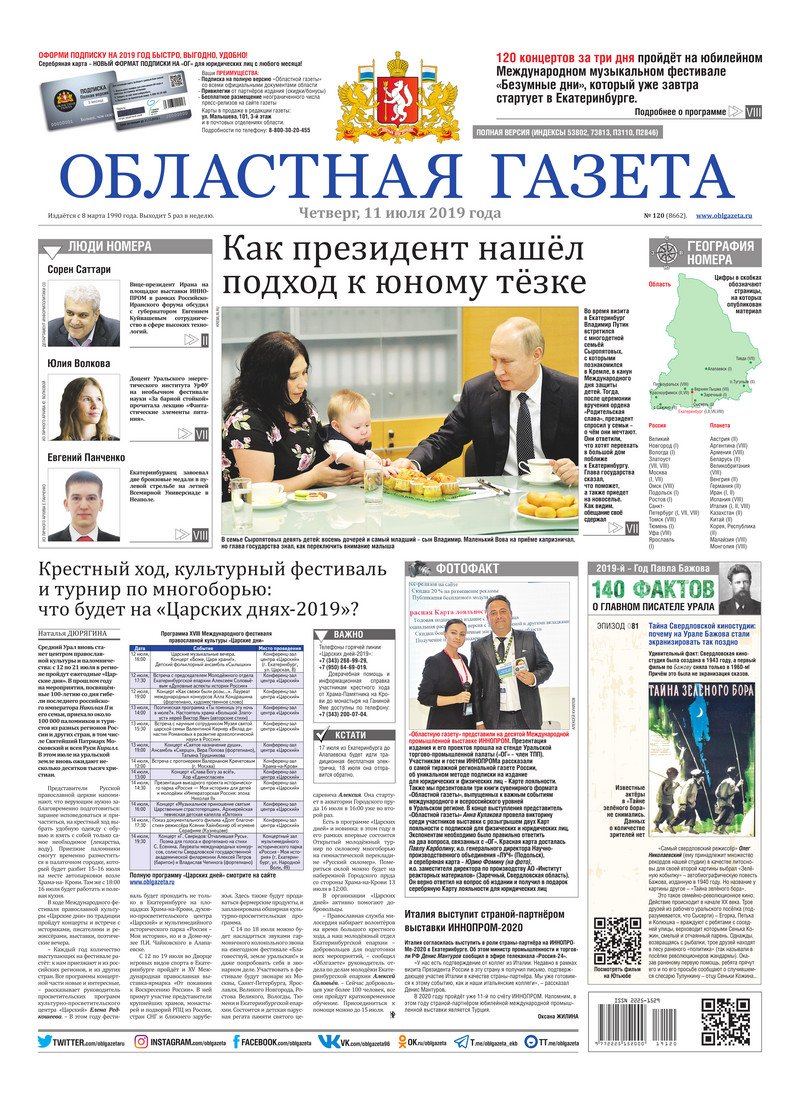 «Областная газета» № 120 (8662) от 11 июля 2019 года