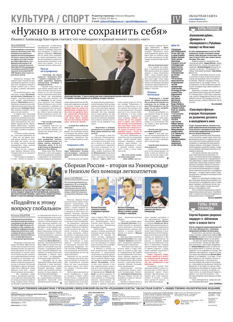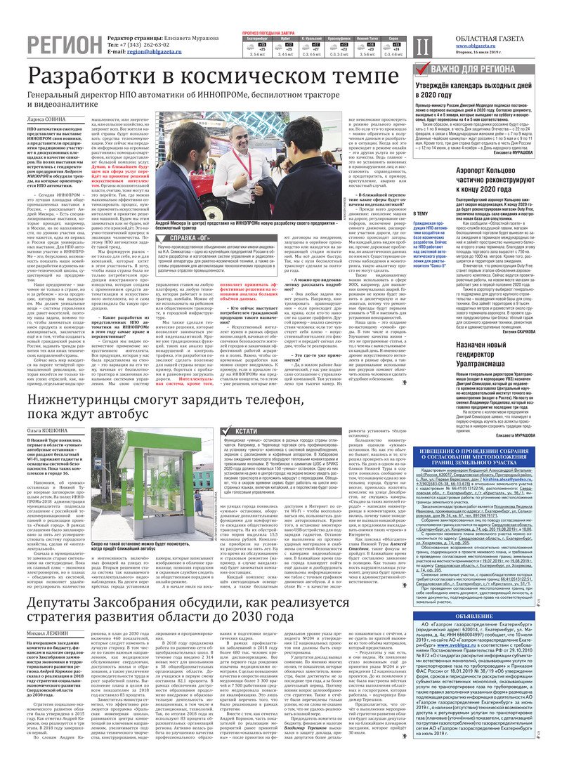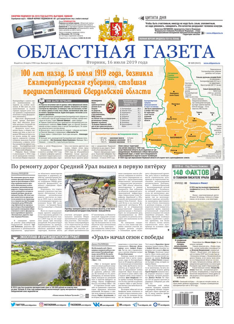 «Областная газета» № 123 (8665) от 16 июля 2019 года
