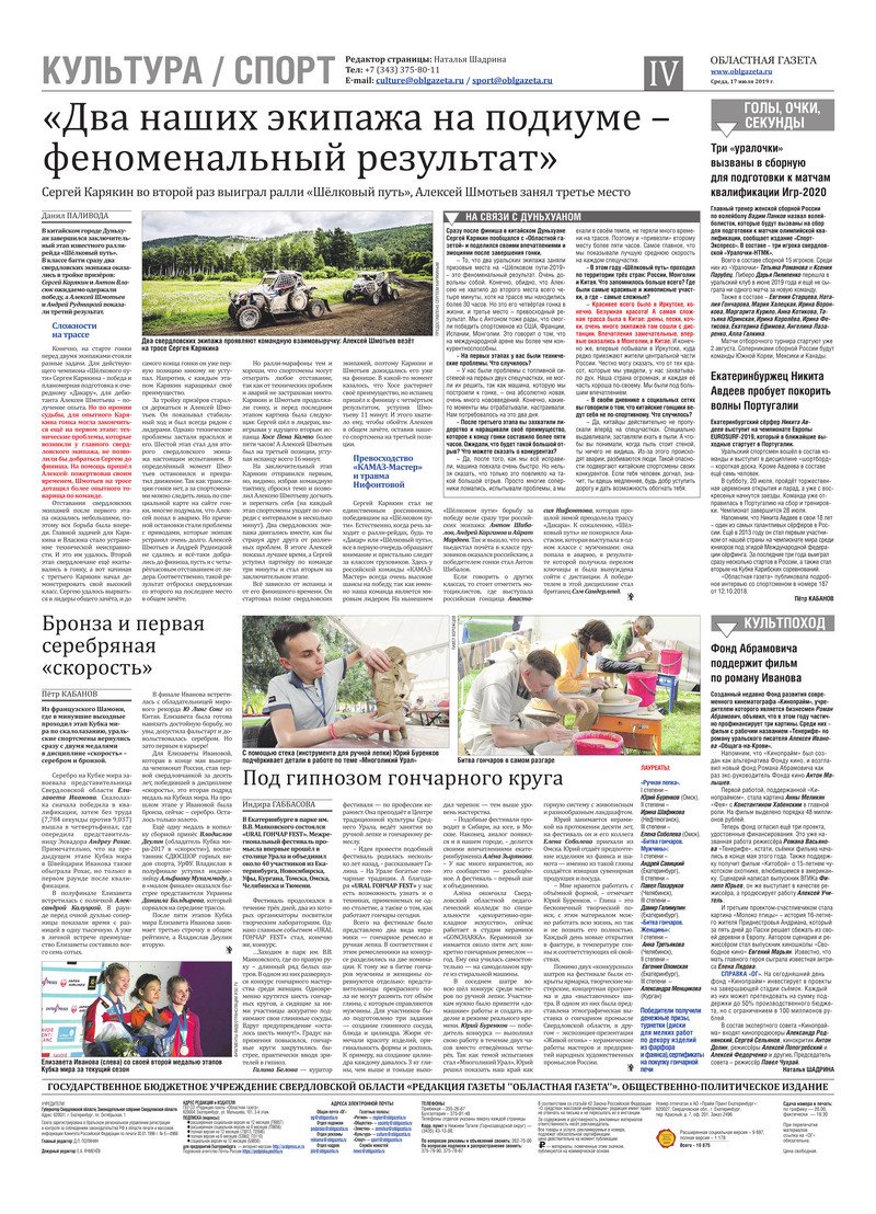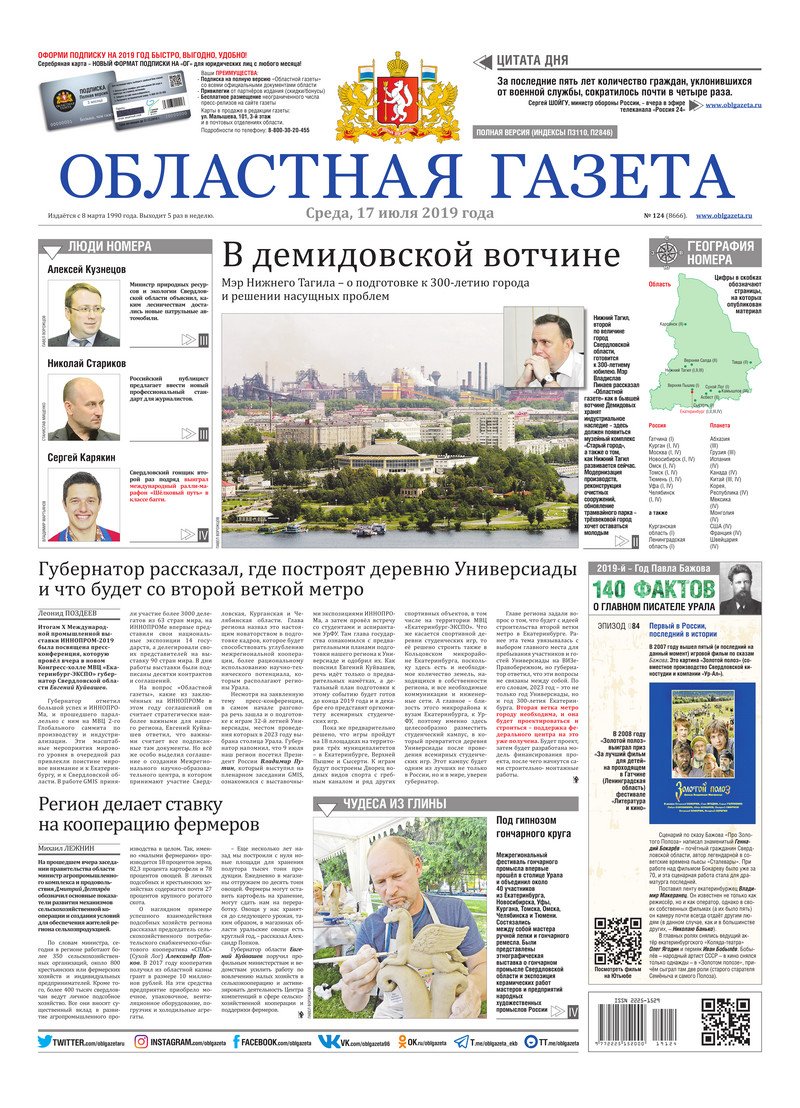 «Областная газета» № 124 (8666) от 17 июля 2019 года