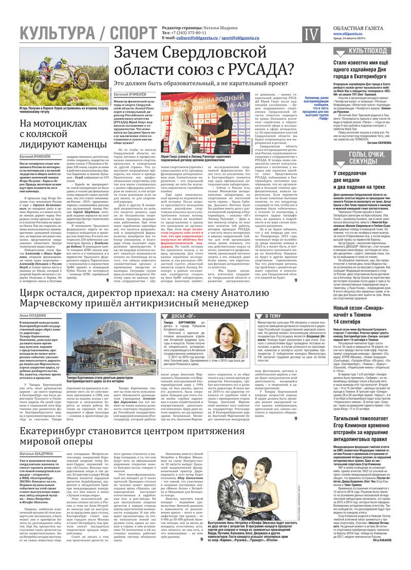 «Областная газета» № 144 (8686) от 14 августа 2019 года