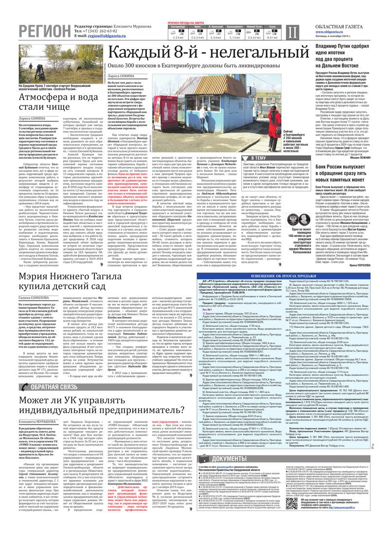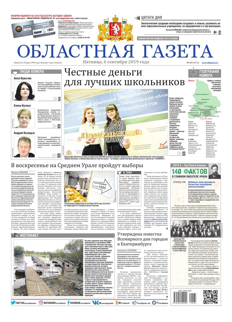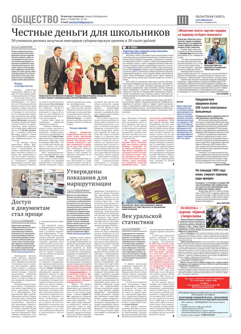 «Областная газета» № 161 (8703) от 6 сентября 2019 года