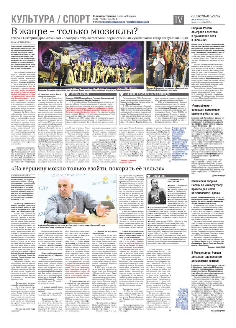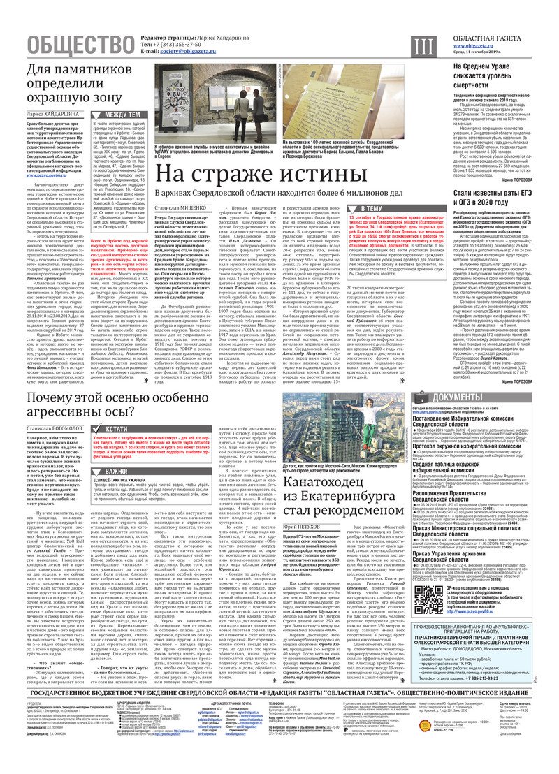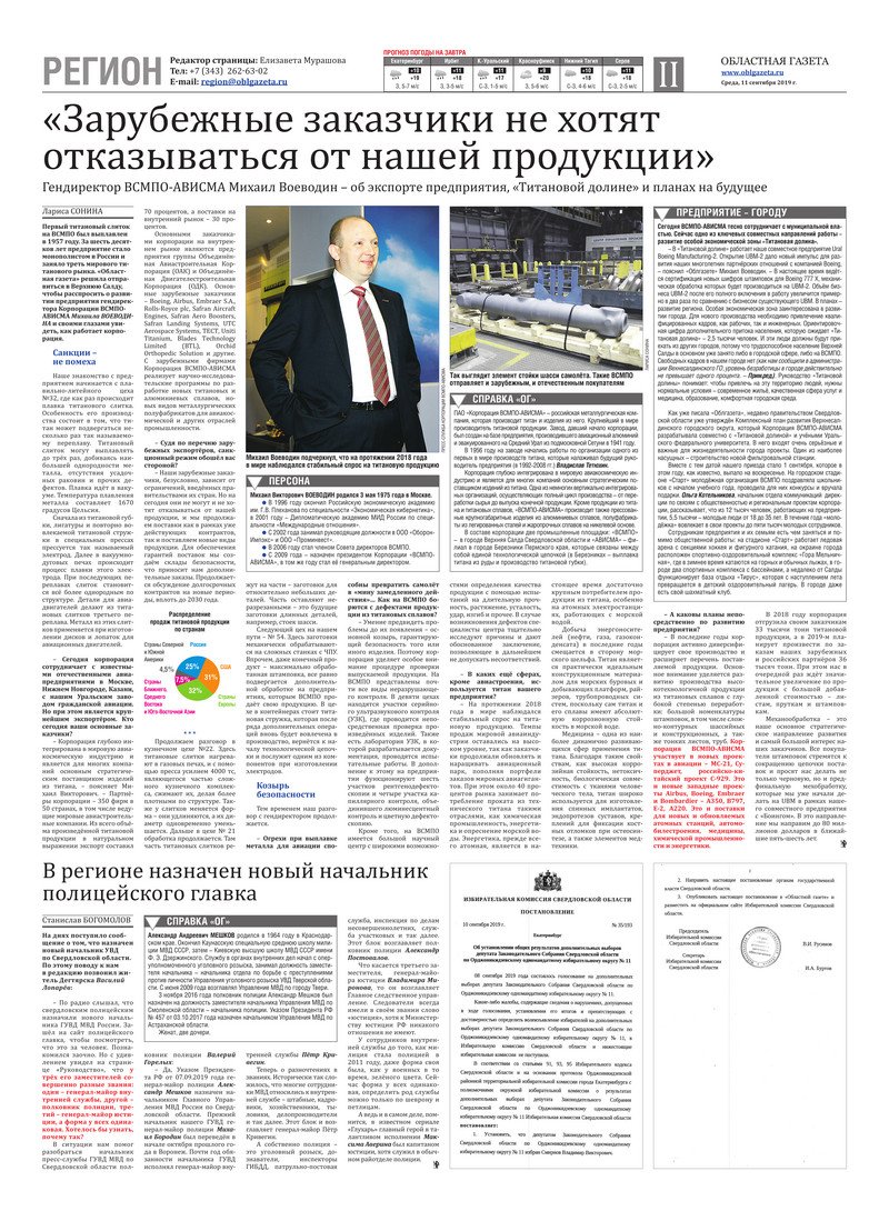 «Областная газета» № 164 (8706) от 11 сентября 2019 года