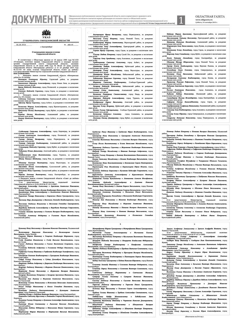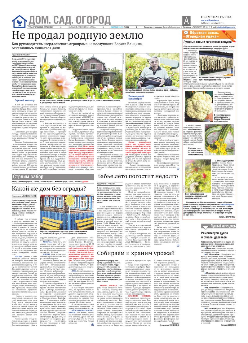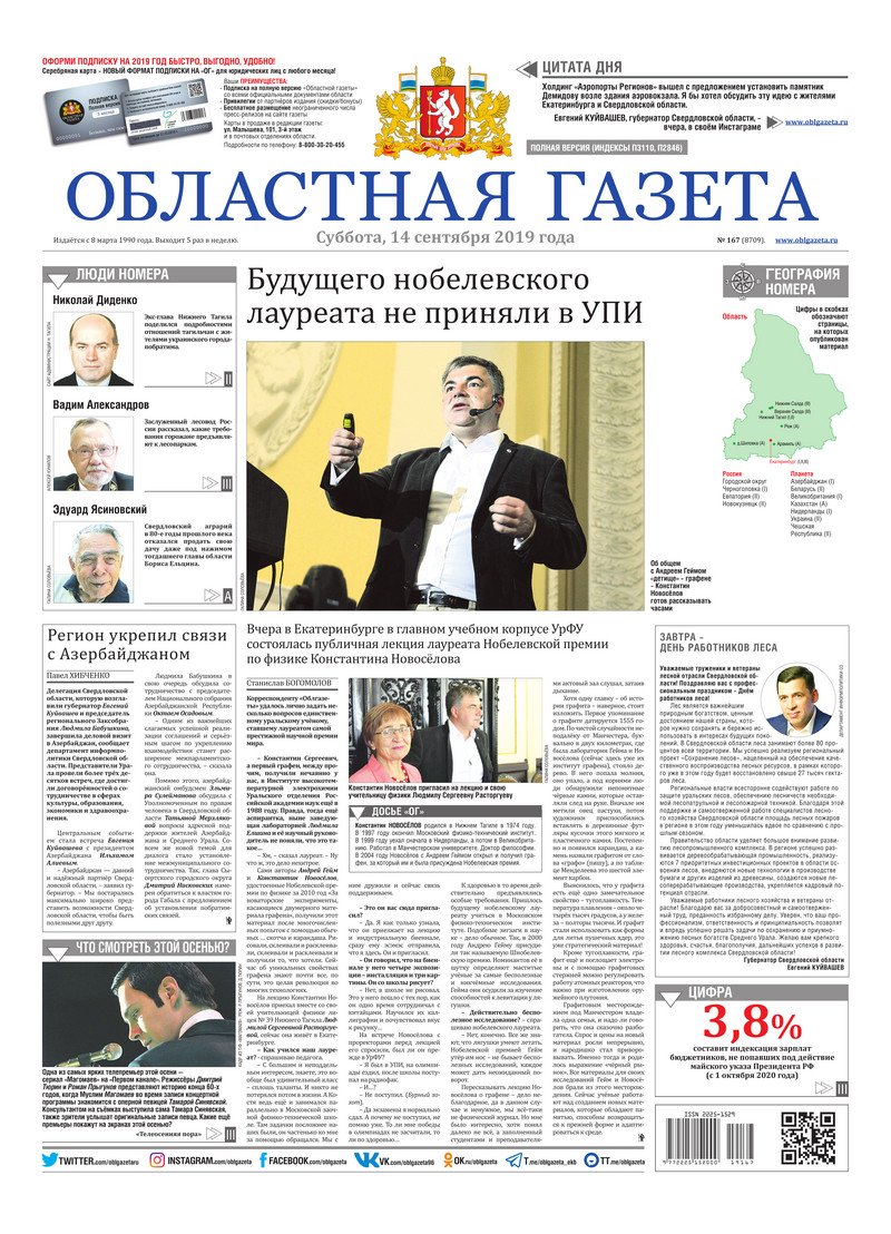 «Областная газета» № 167 (8709) от 14 сентября 2019 года