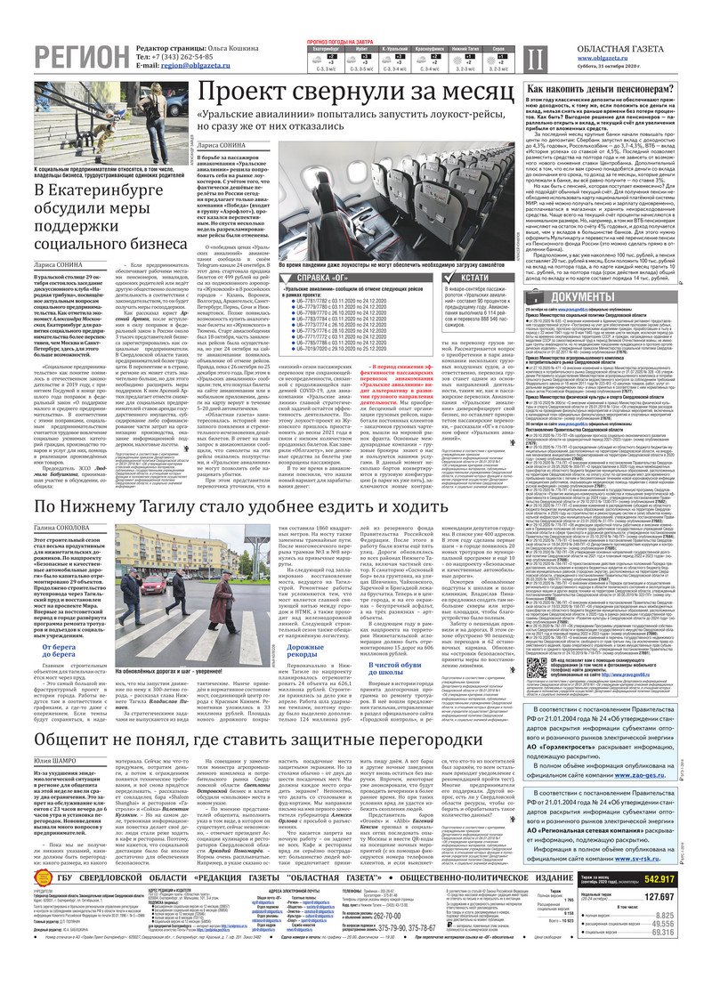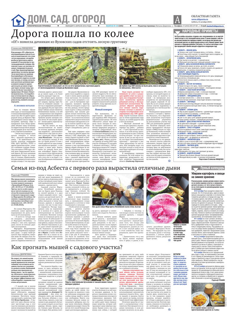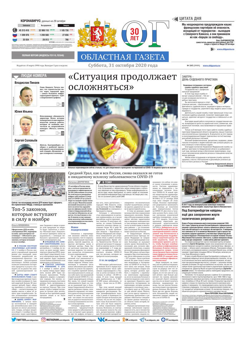 «Областная газета» № 205 (8989) от 31 октября 2020 года