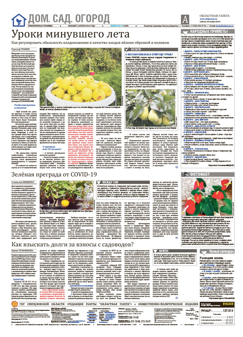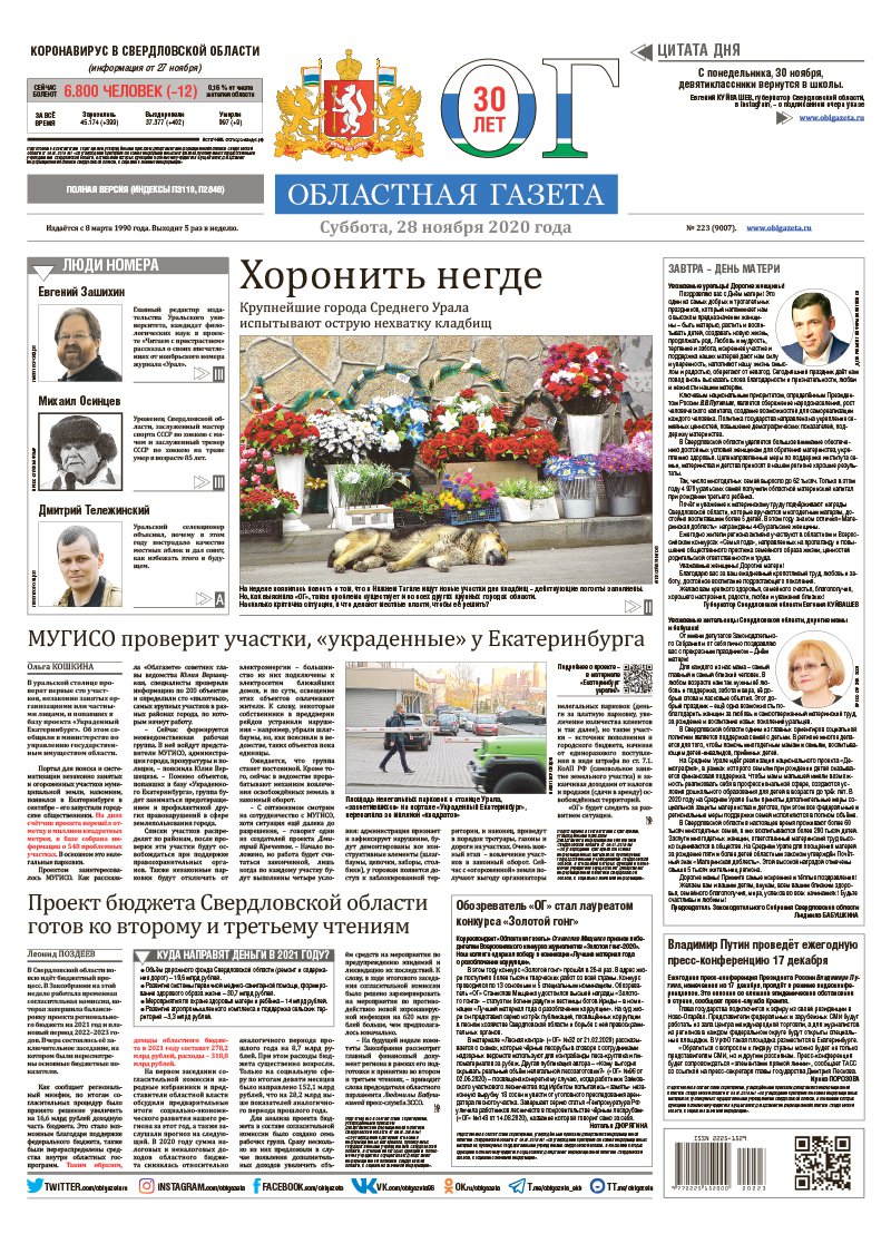 «Областная газета» № 223 (9007) от 28 ноября 2020 года