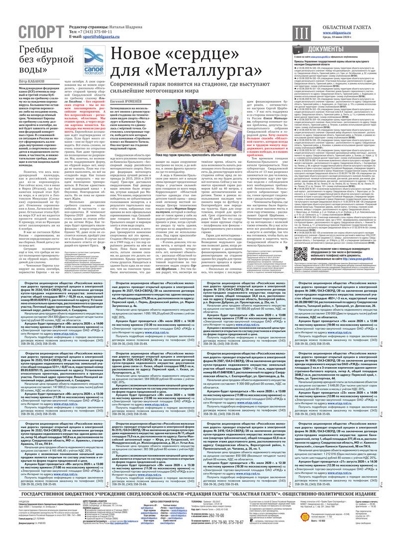 «Областная газета» № 102 (8886) от 10 июня 2020 года