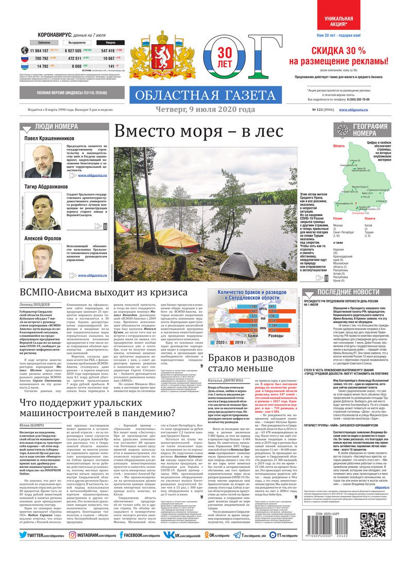 «Областная газета» № 122 (8906) от 9 июля 2020 года