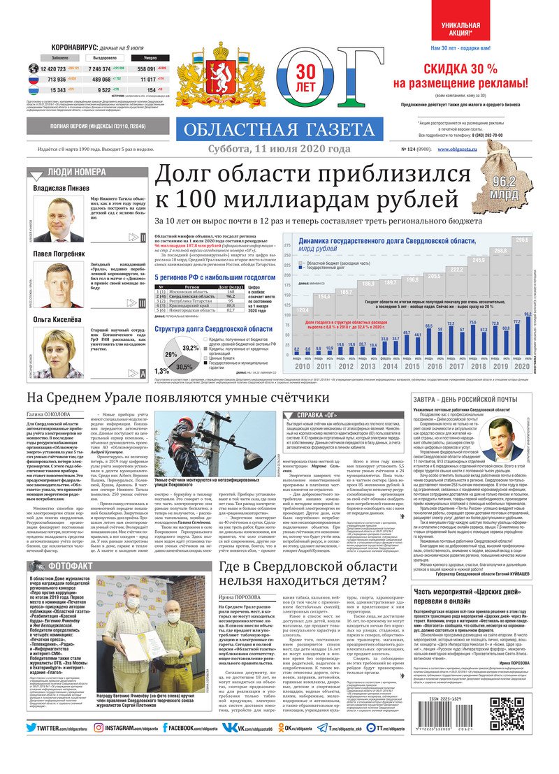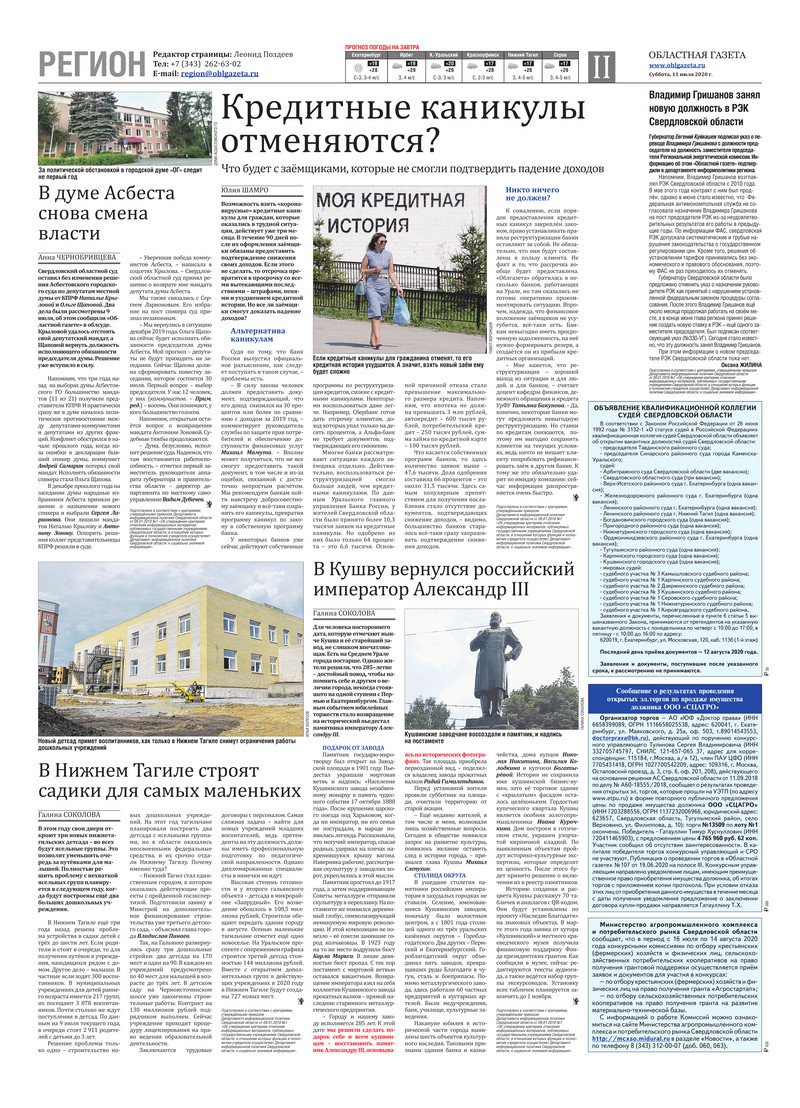 «Областная газета» № 124 (8908) от 11 июля 2020 года