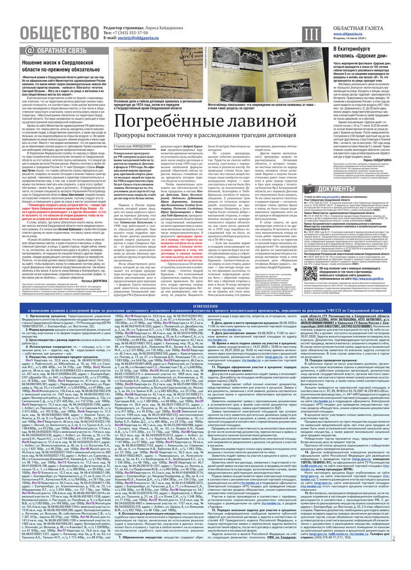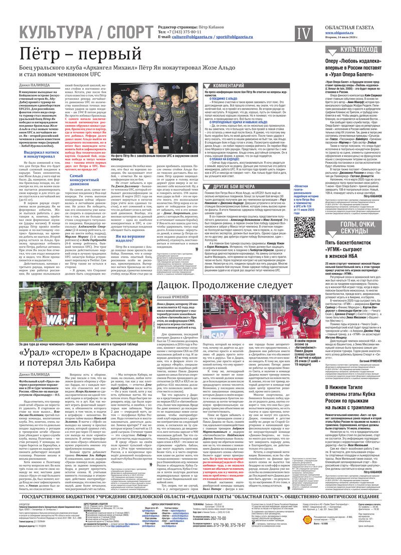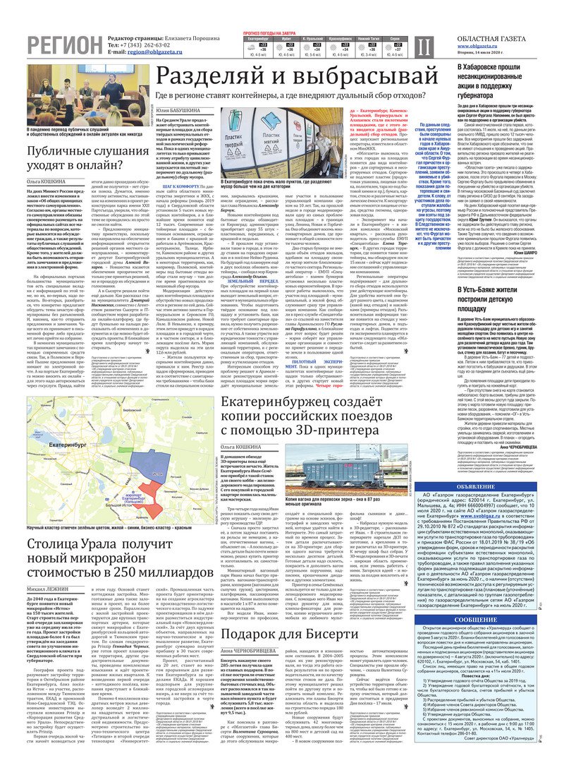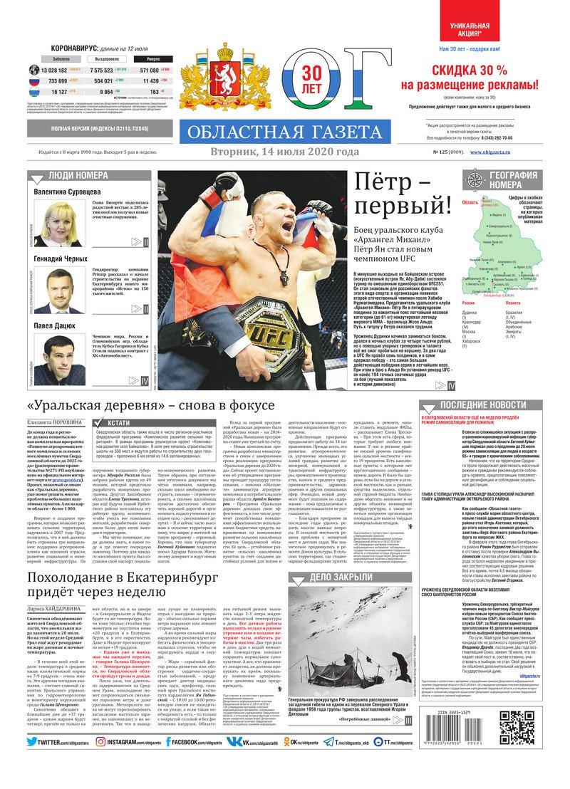«Областная газета» № 125 (8909) от 14 июля 2020 года