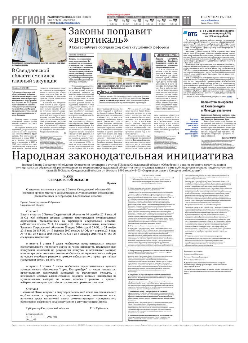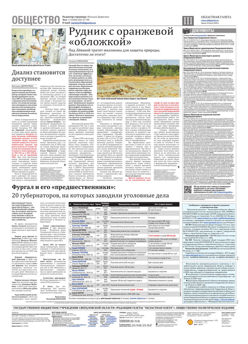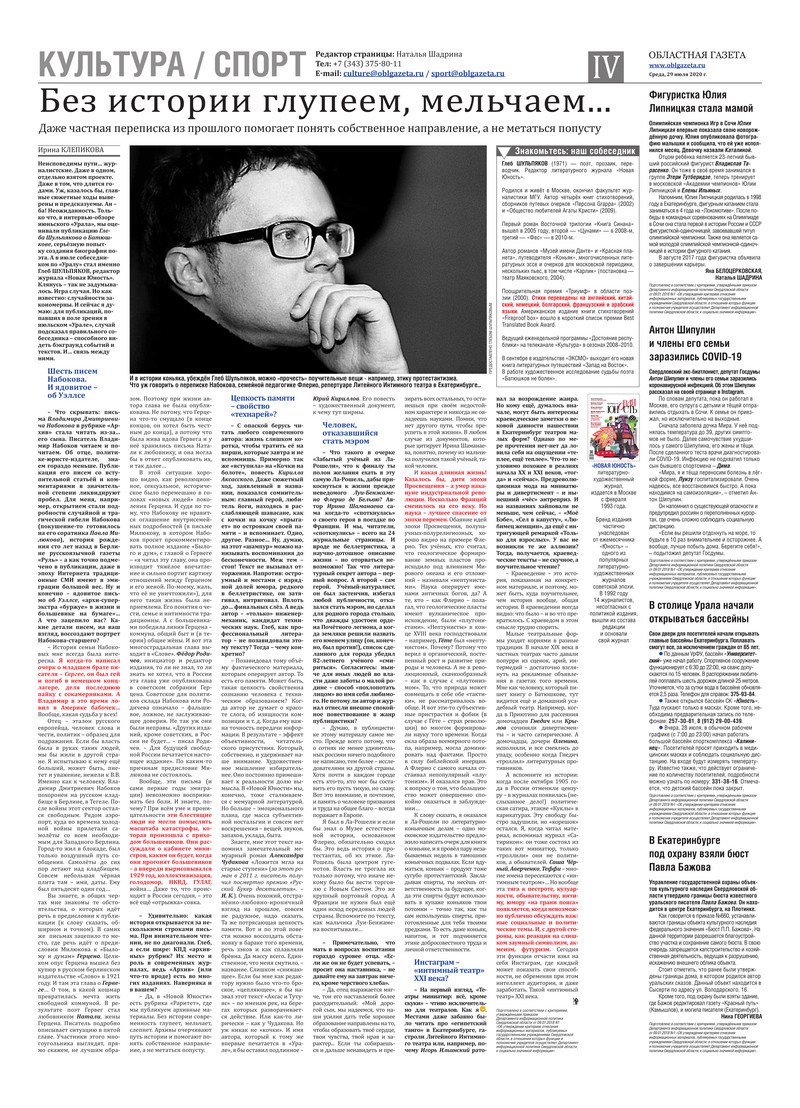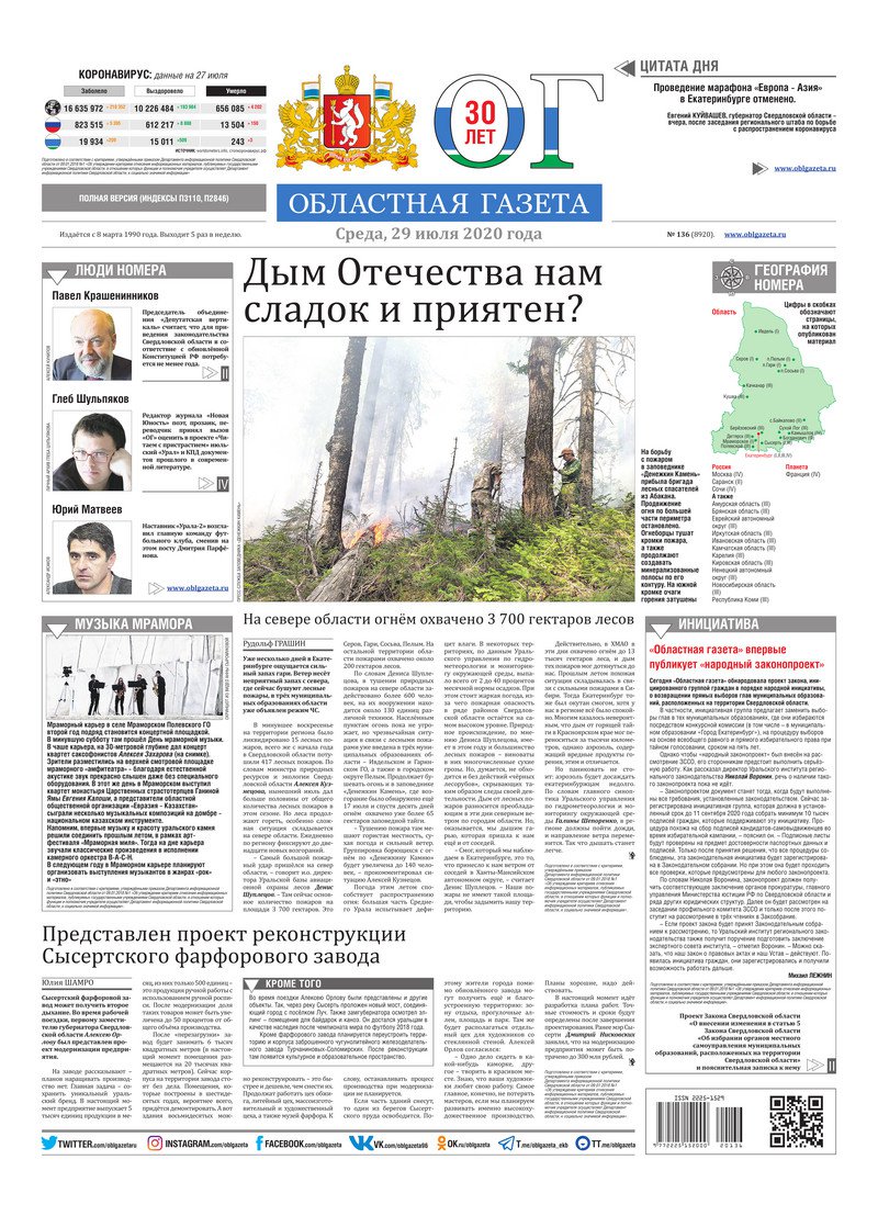 «Областная газета» № 136 (8920) от 29 июля 2020 года