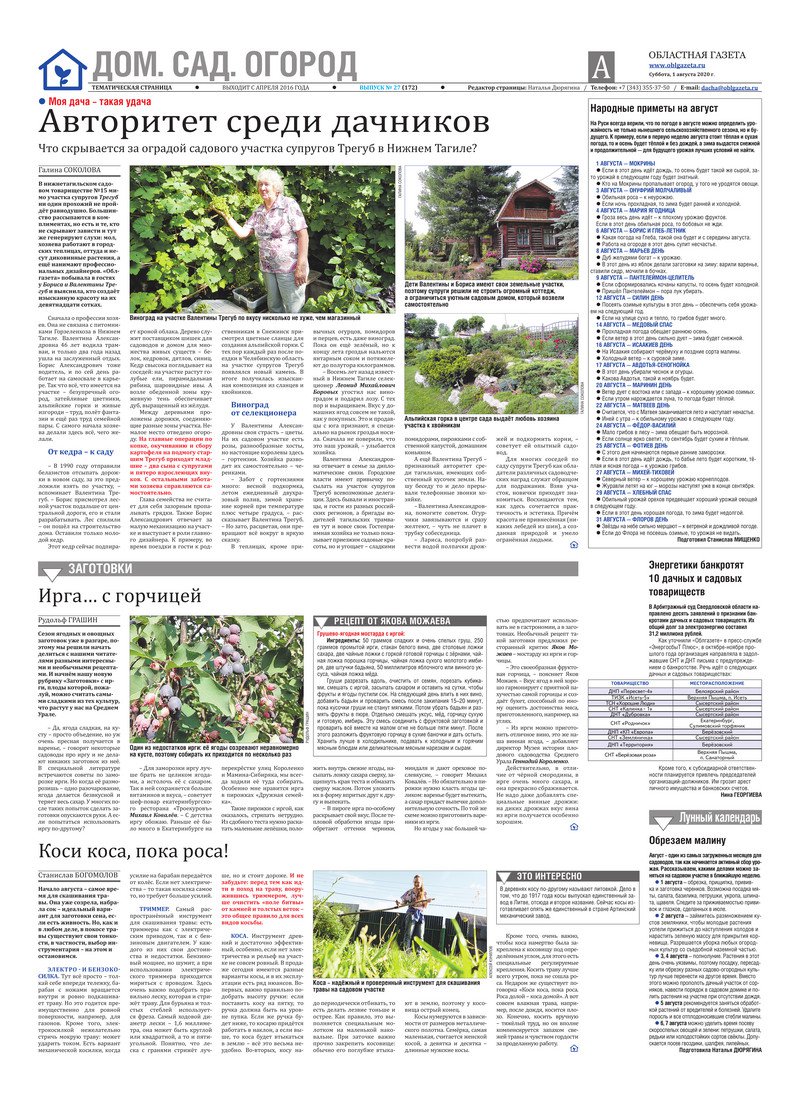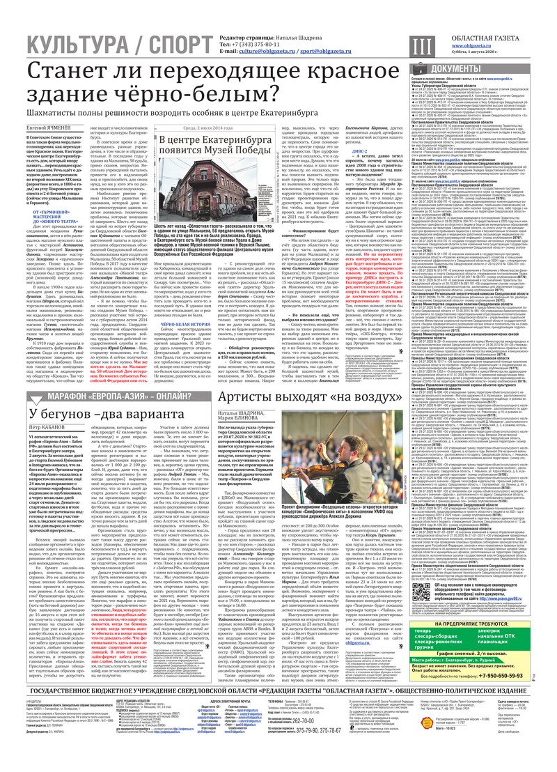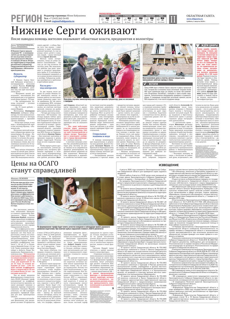 «Областная газета» № 139 (8923) от 1 августа 2020 года