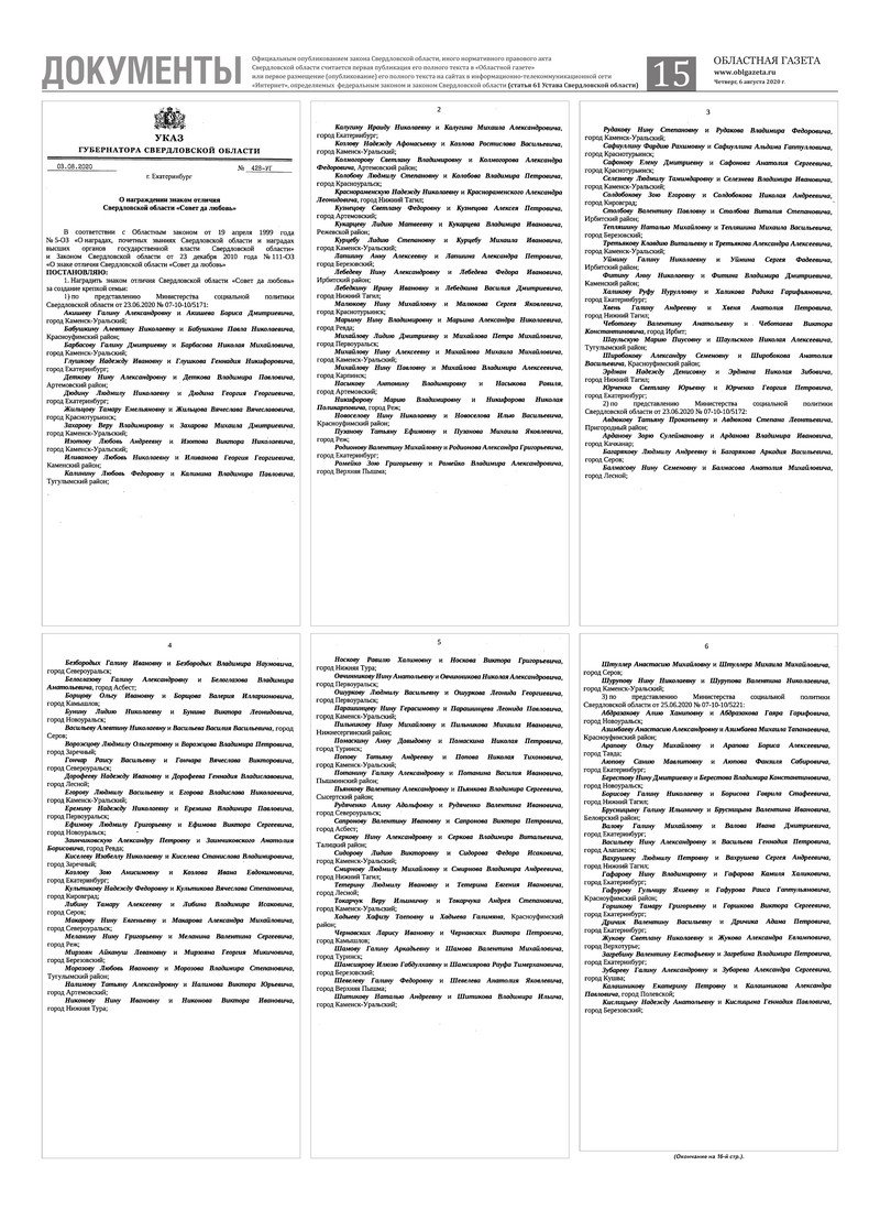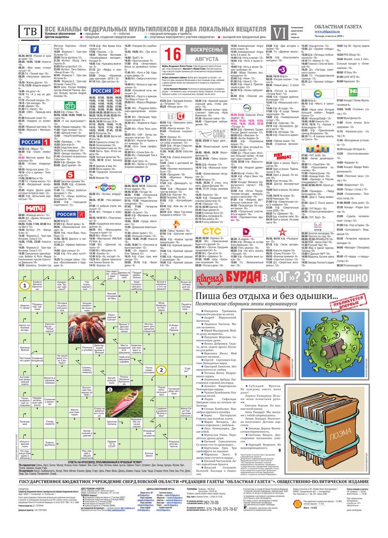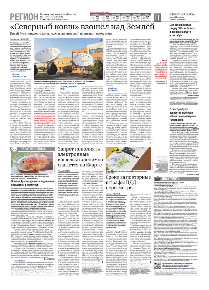 «Областная газета» № 142 (8926) от 6 августа 2020 года