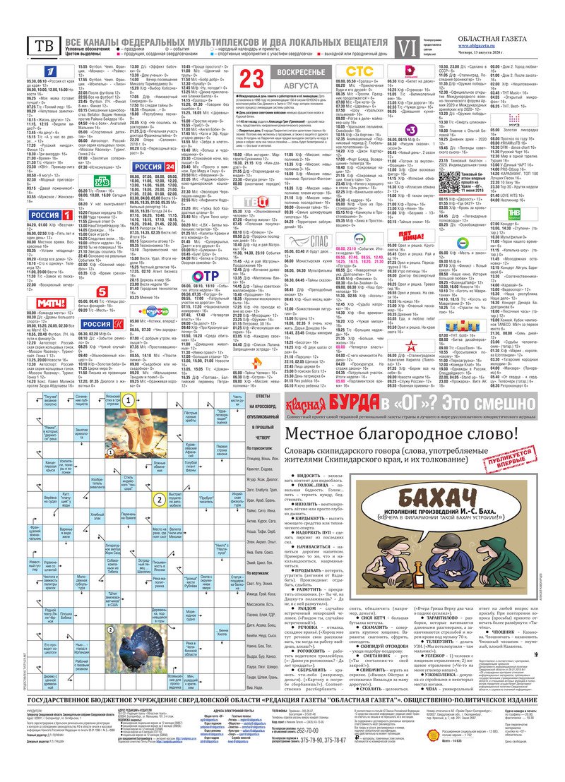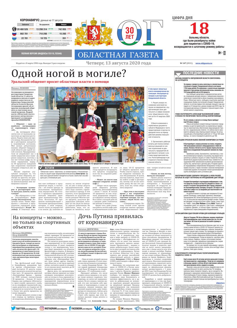 «Областная газета» № 147 (8931) от 13 августа 2020 года