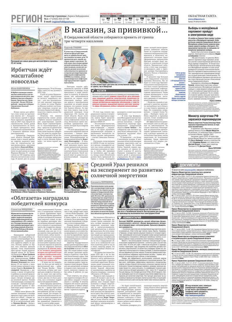 «Областная газета» № 151 (8935) от 19 августа 2020 года