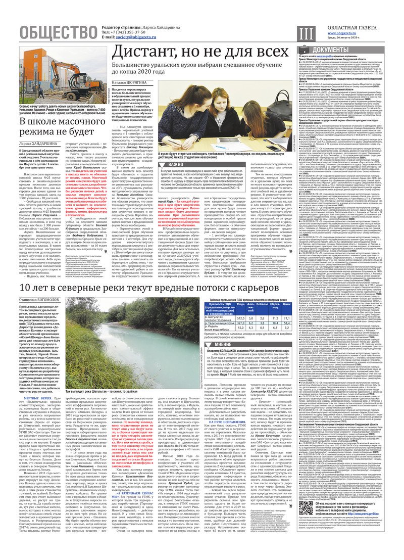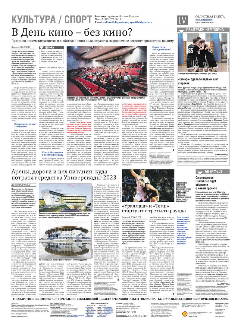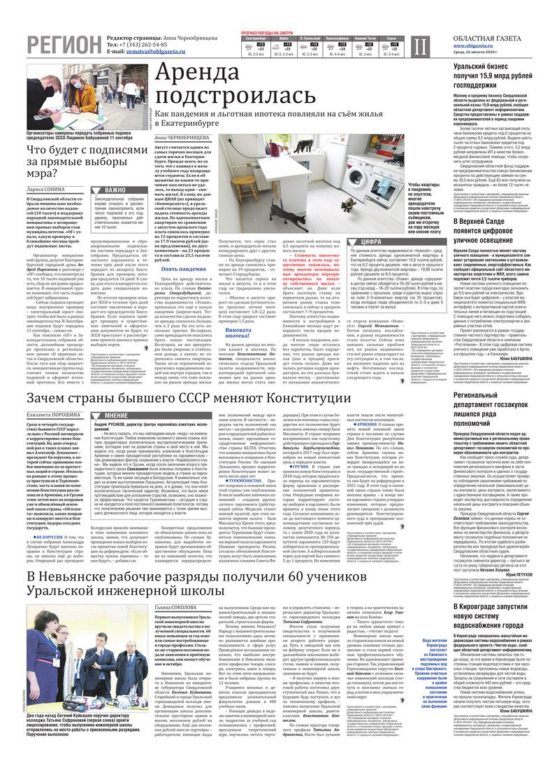 «Областная газета» № 156 (8940) от 26 августа 2020 года