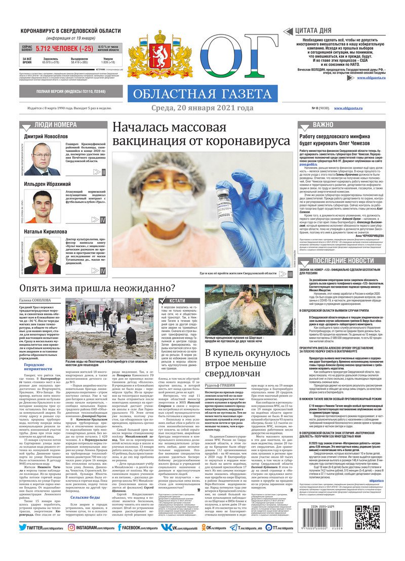 «Областная газета» № 8 (9038) от 20 января 2021 года
