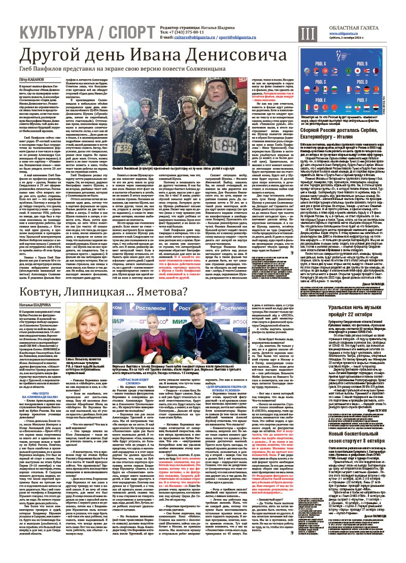 «Областная газета» № 183 (9213) от 2 октября 2021 года