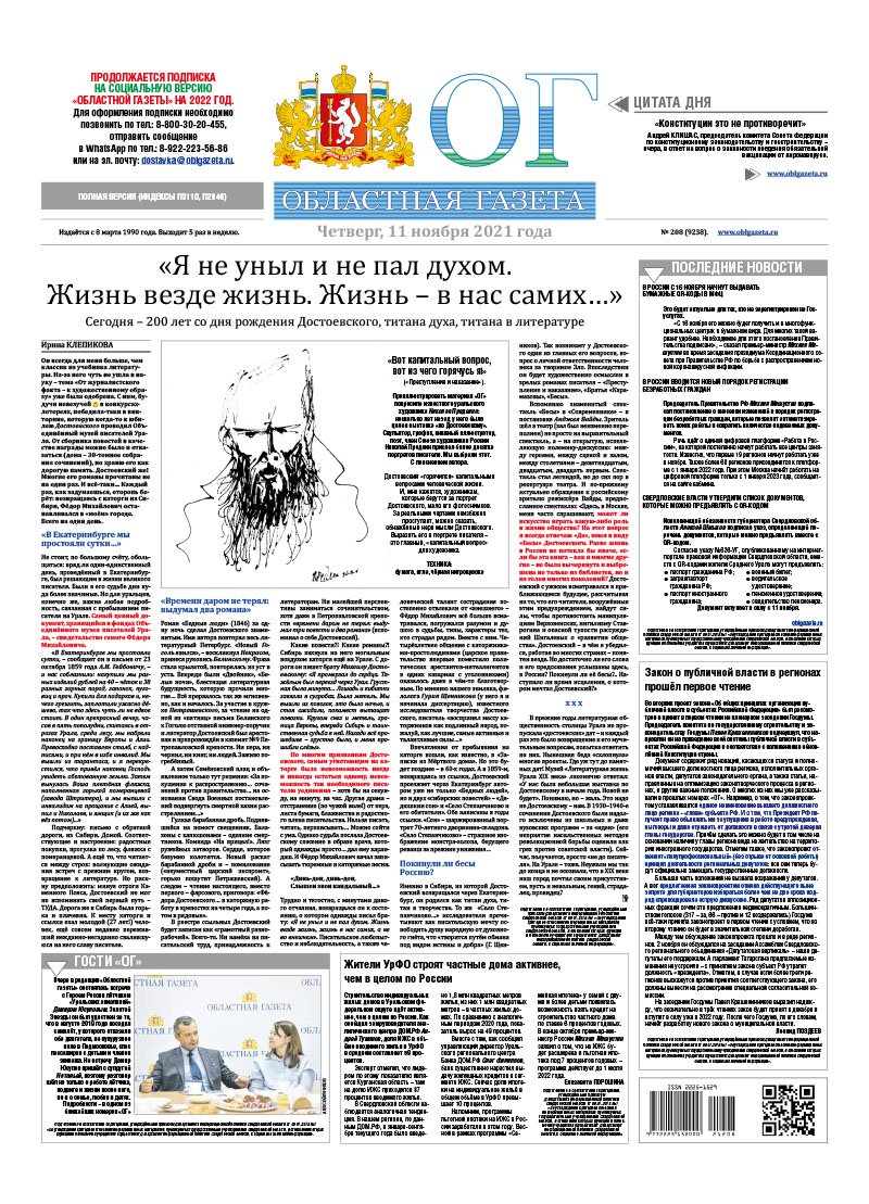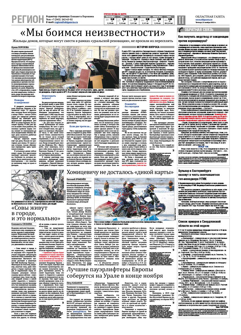 «Областная газета» № 208 (9238) от 11 ноября 2021 года