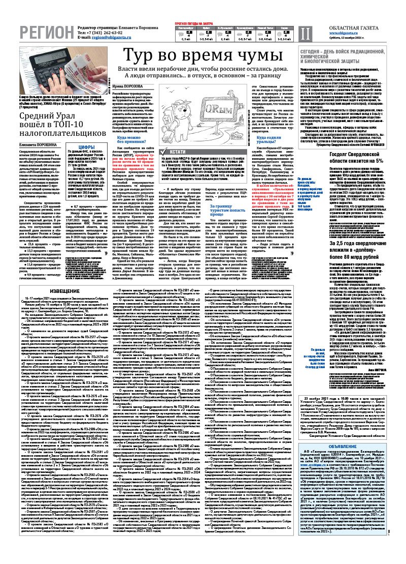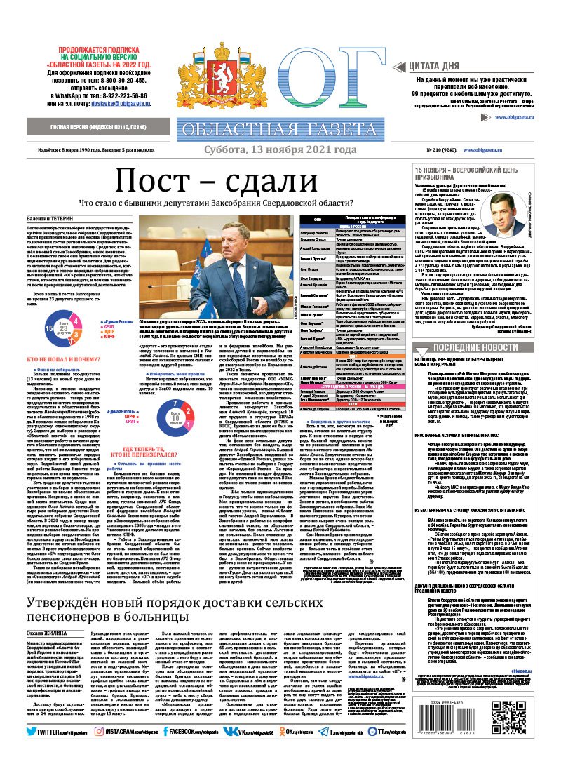 «Областная газета» № 210 (9240) от 13 ноября 2021 года