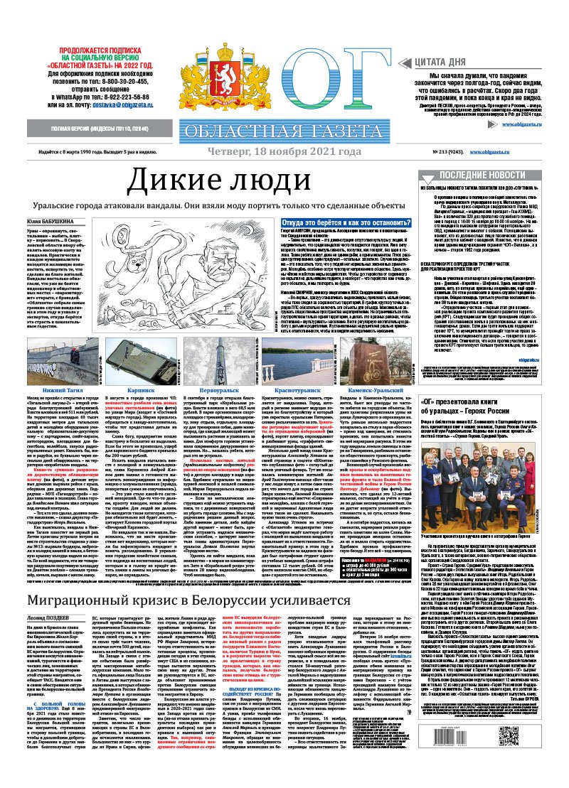 «Областная газета» № 213 (9243) от 18 ноября 2021 года