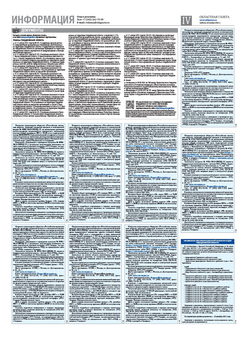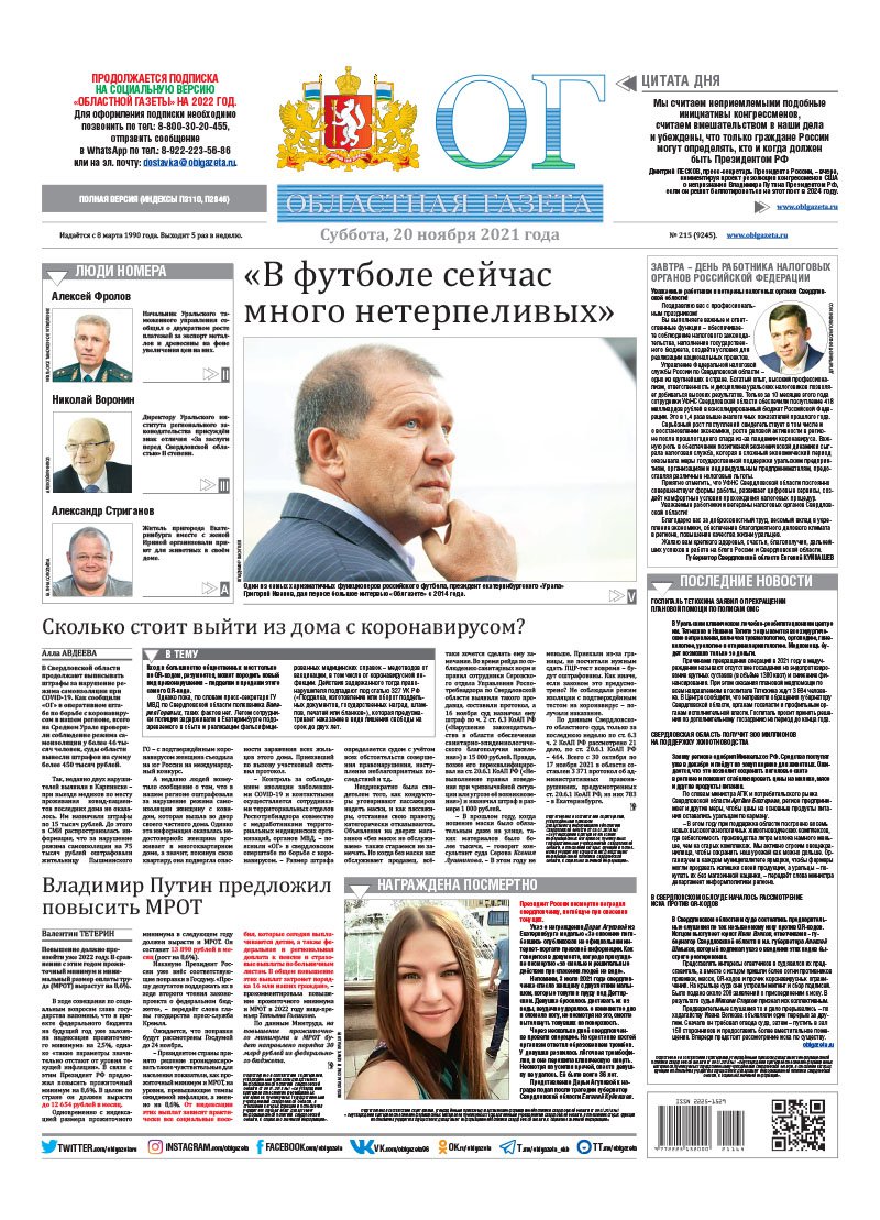 «Областная газета» № 215 (9245) от 20 ноября 2021 года