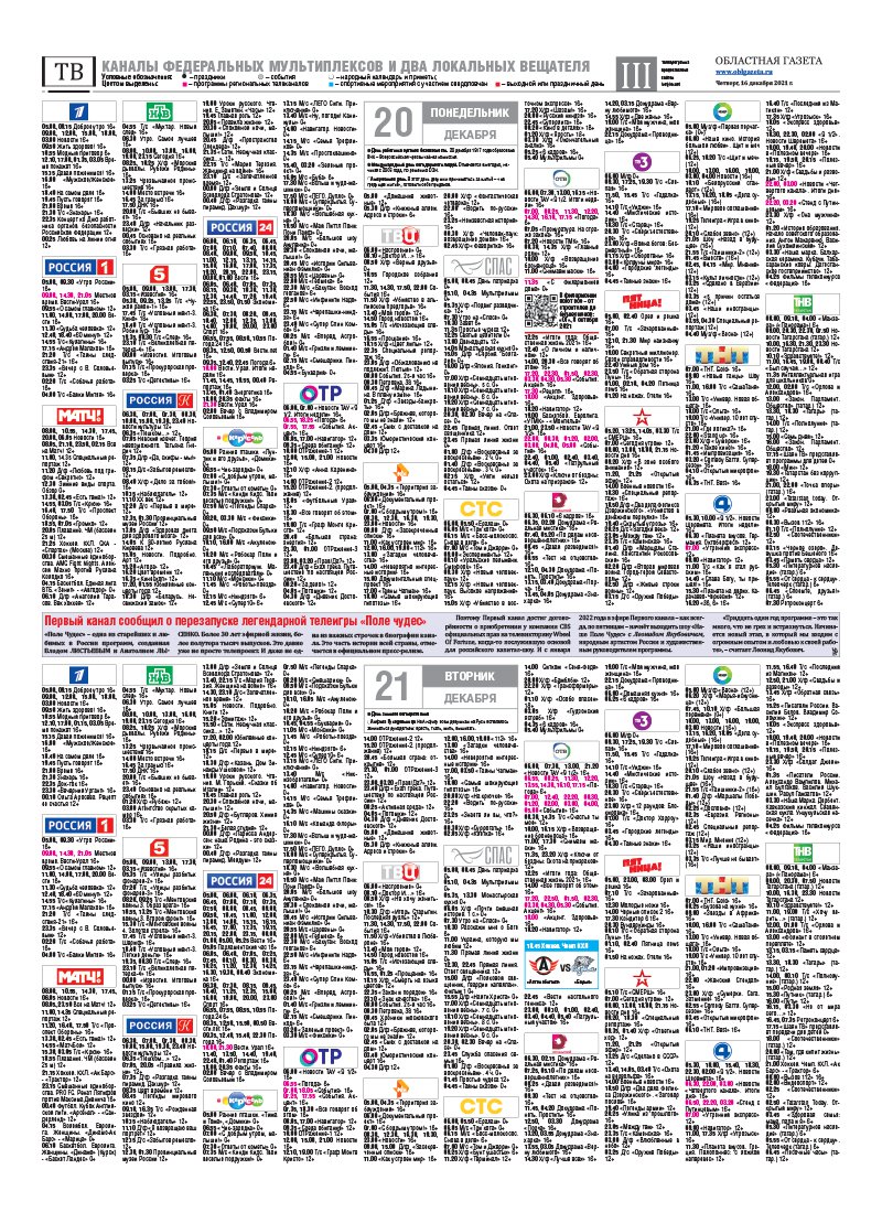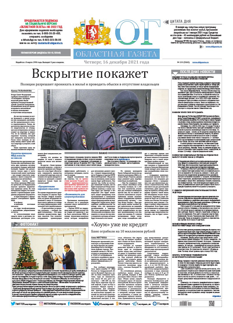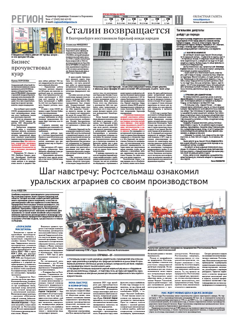 «Областная газета» № 233 (9263) от 16 декабря 2021 года