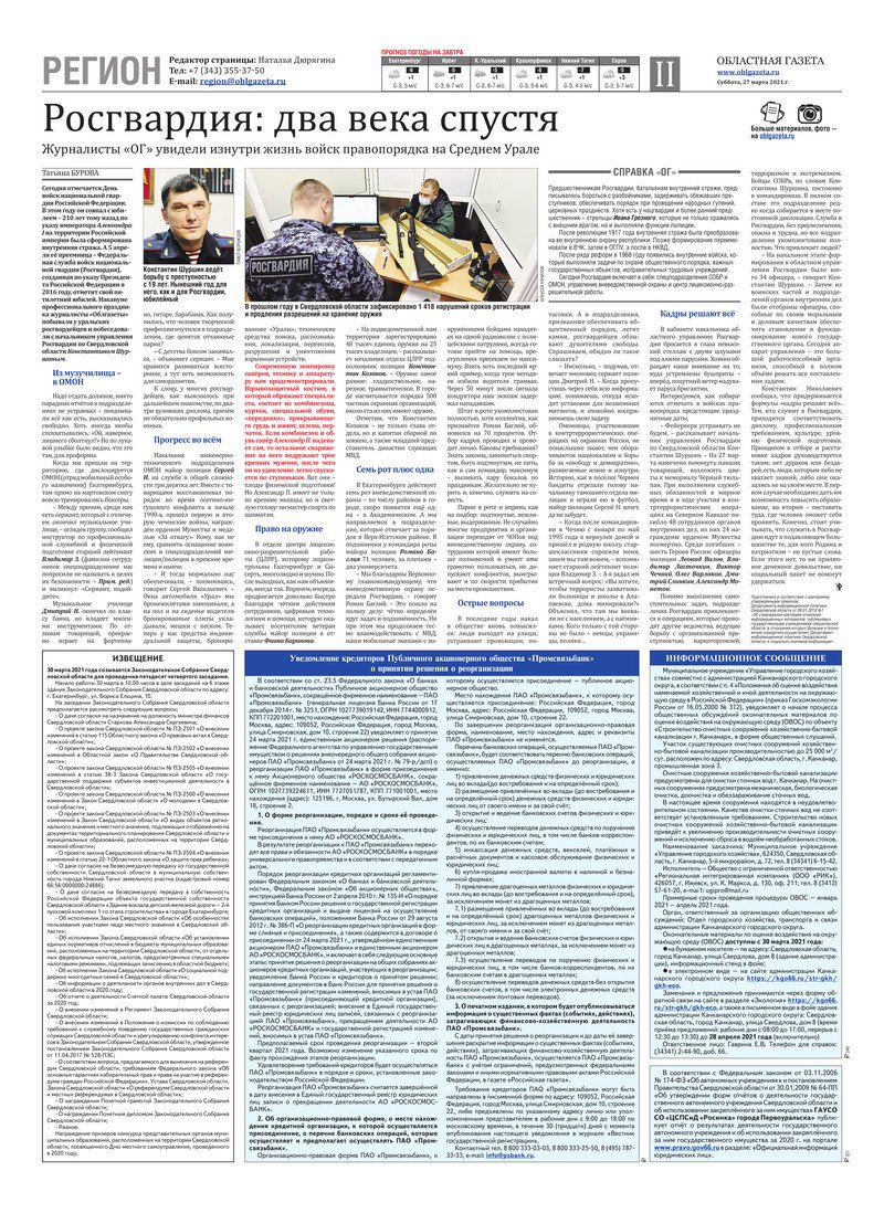 «Областная газета» № 53 (9083) от 27 марта 2021 года