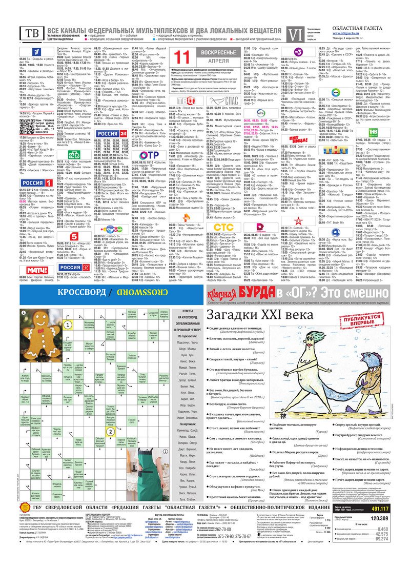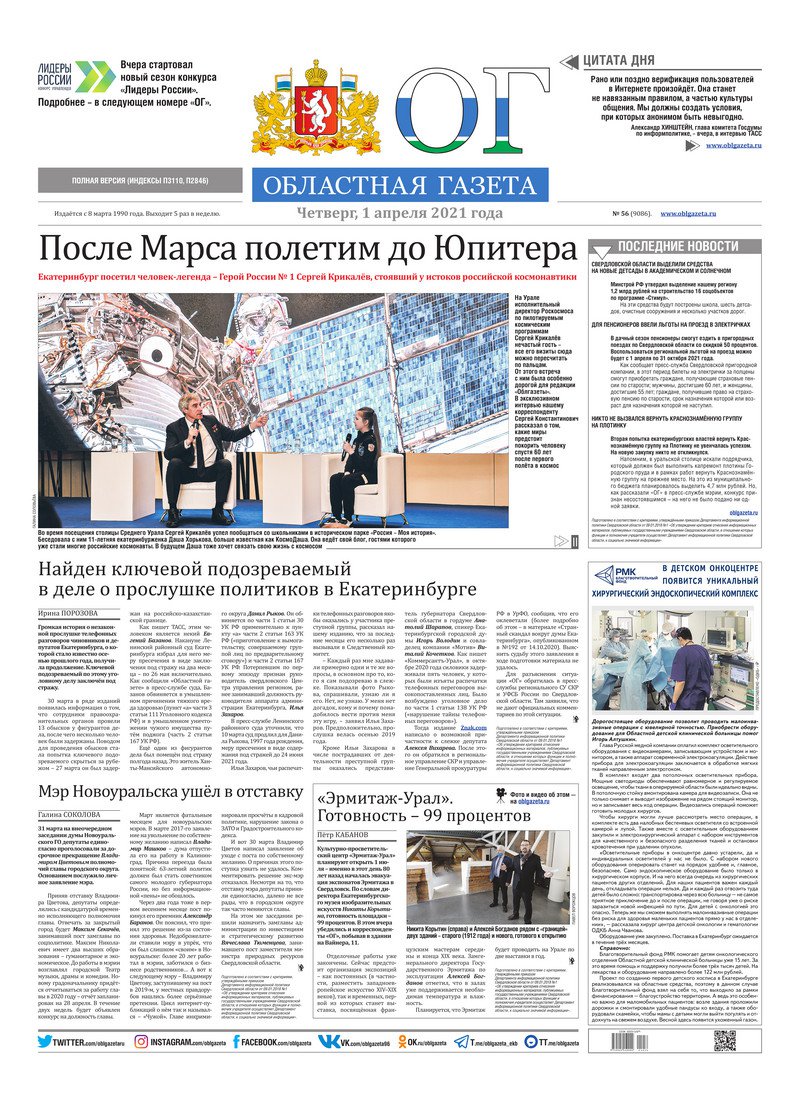 «Областная газета» № 56 (9086) от 1 апреля 2021 года