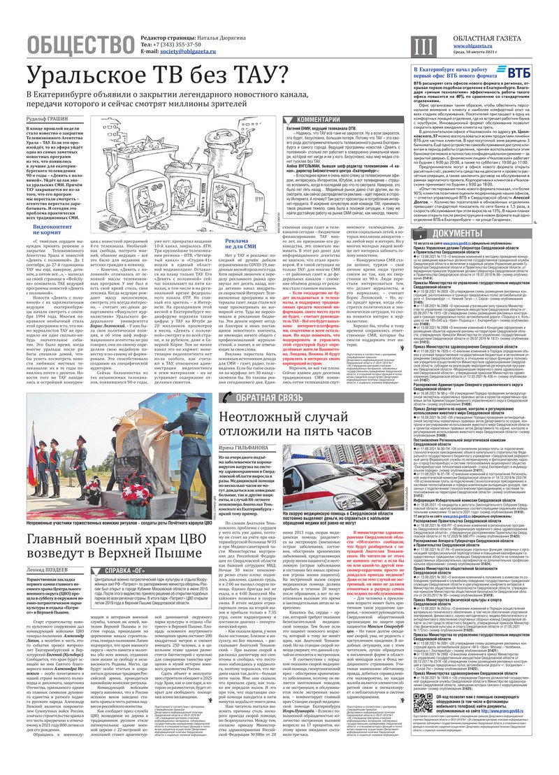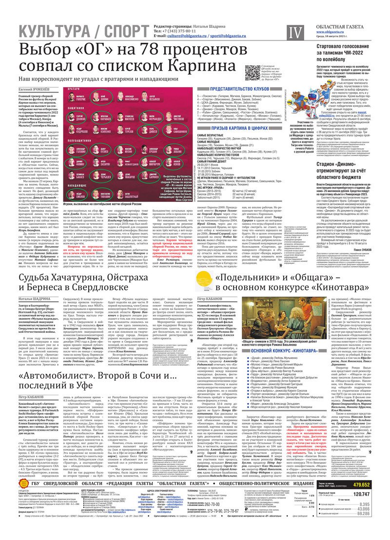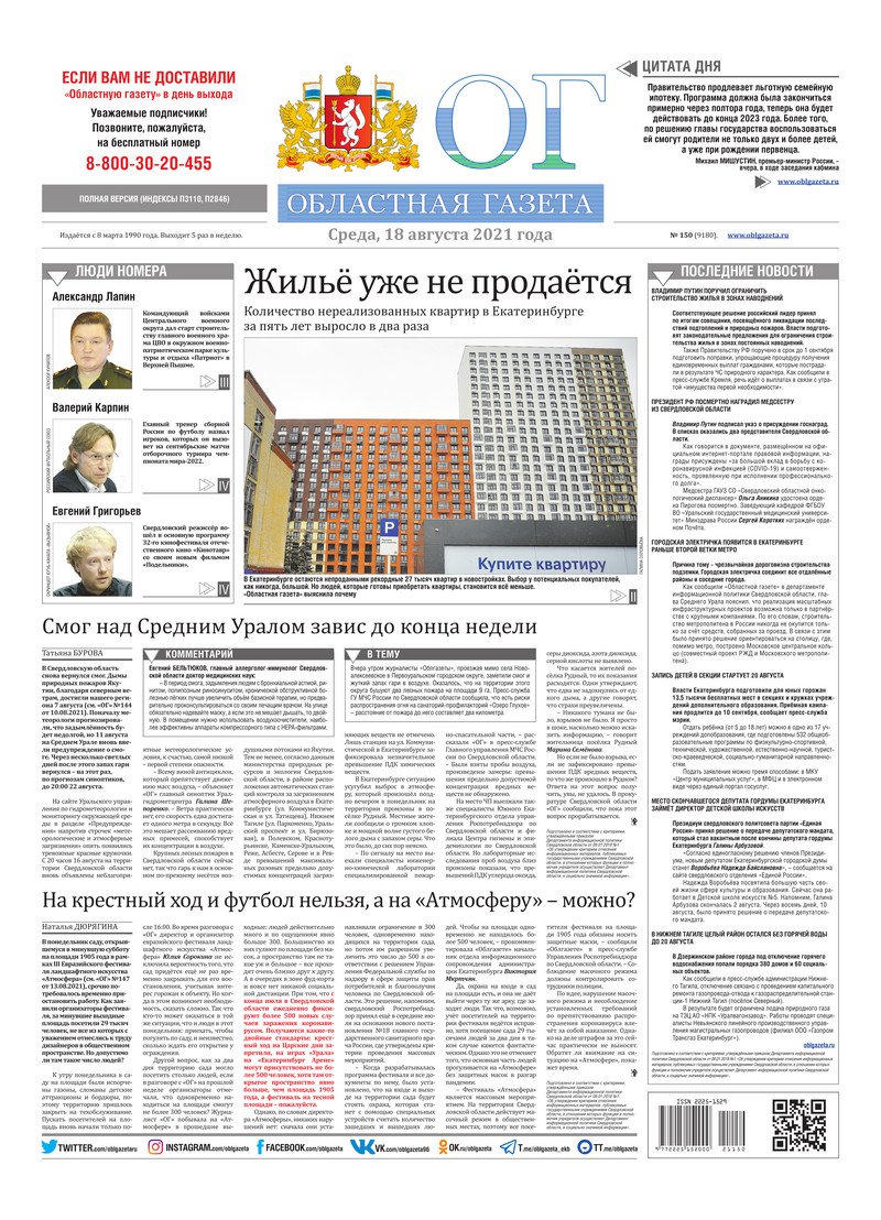 «Областная газета» № 150 (9180) от 18 августа 2021 года