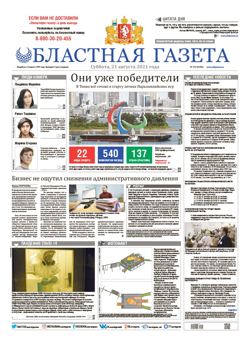 «Областная газета» № 153 (9183) от 21 августа 2021 года
