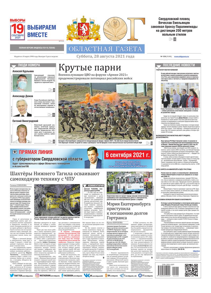 «Областная газета» № 158 (9188) от 28 августа 2021 года