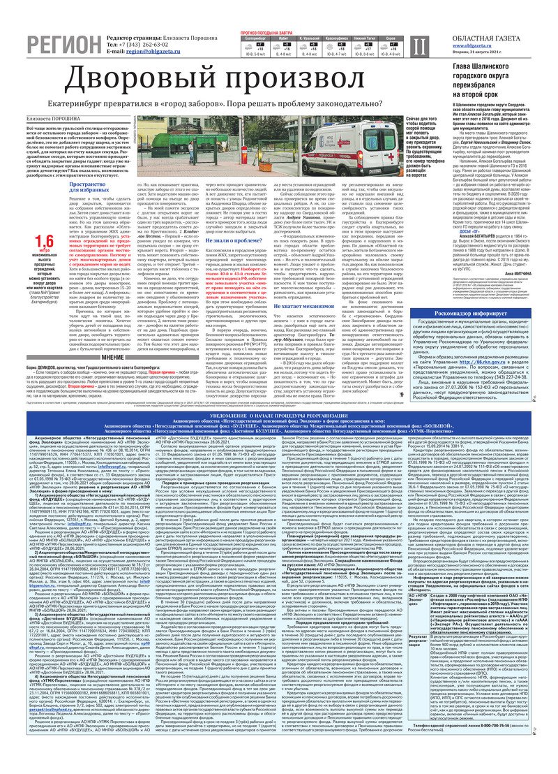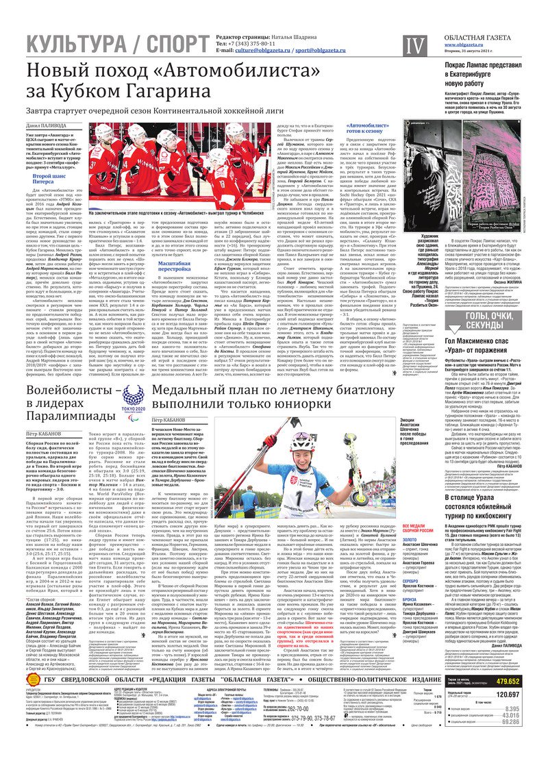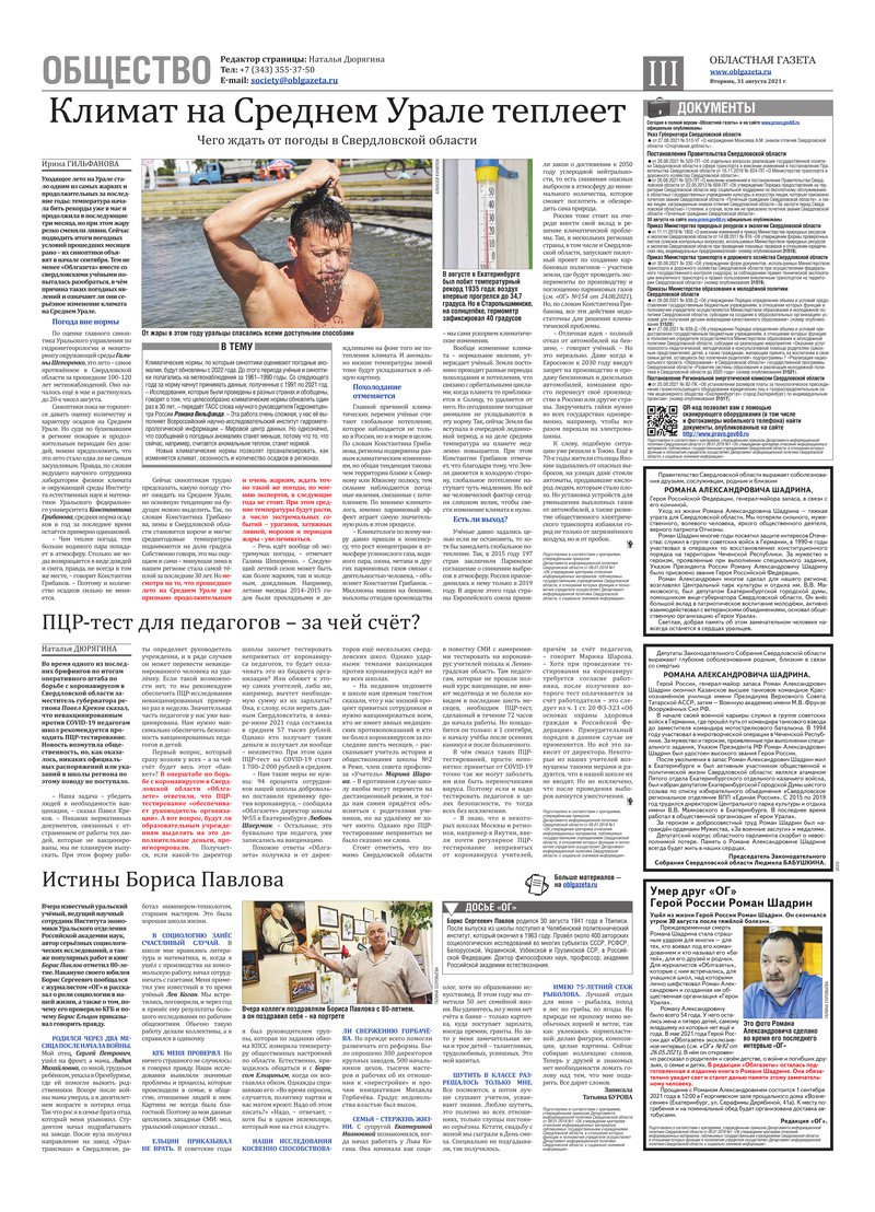 «Областная газета» № 159 (9189) от 31 августа 2021 года